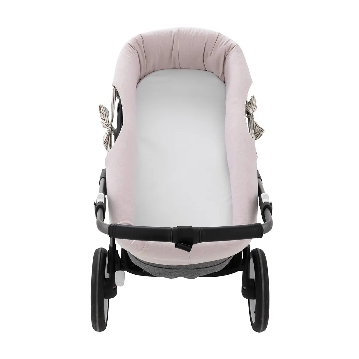 Gracias a su confección textil, se adapta al interior del capazo sin necesidad de cierres, facilitando su colocación y retirada. Fabricada con tejidos suaves y agradables al tacto, proporciona confort al bebé y protege el interior del capazo, siendo una opción práctica y funcional para el uso diario.