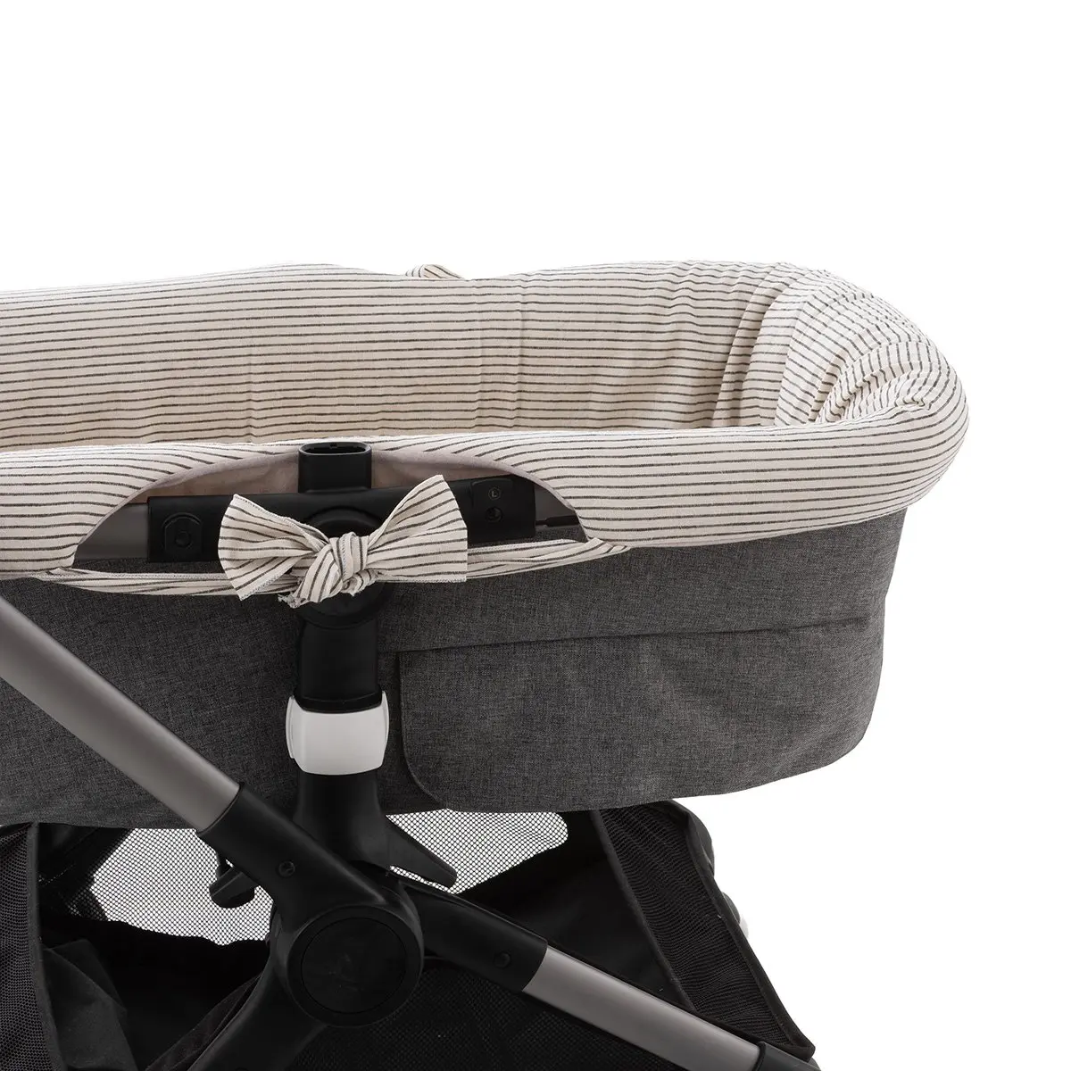Garnitura reversible para capazo sin capota o con capota sin sistema de cremallera, diseñada para vestir y proteger el interior del capazo de forma sencilla y práctica.