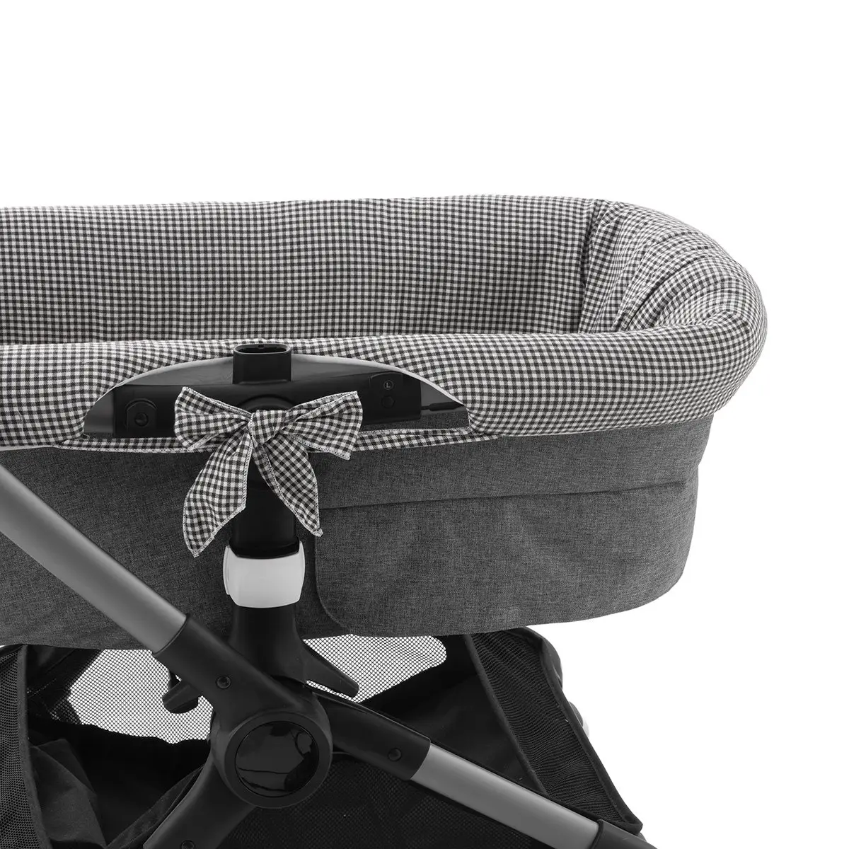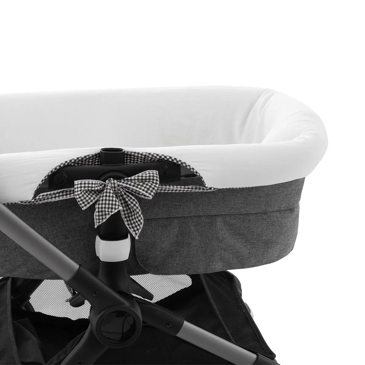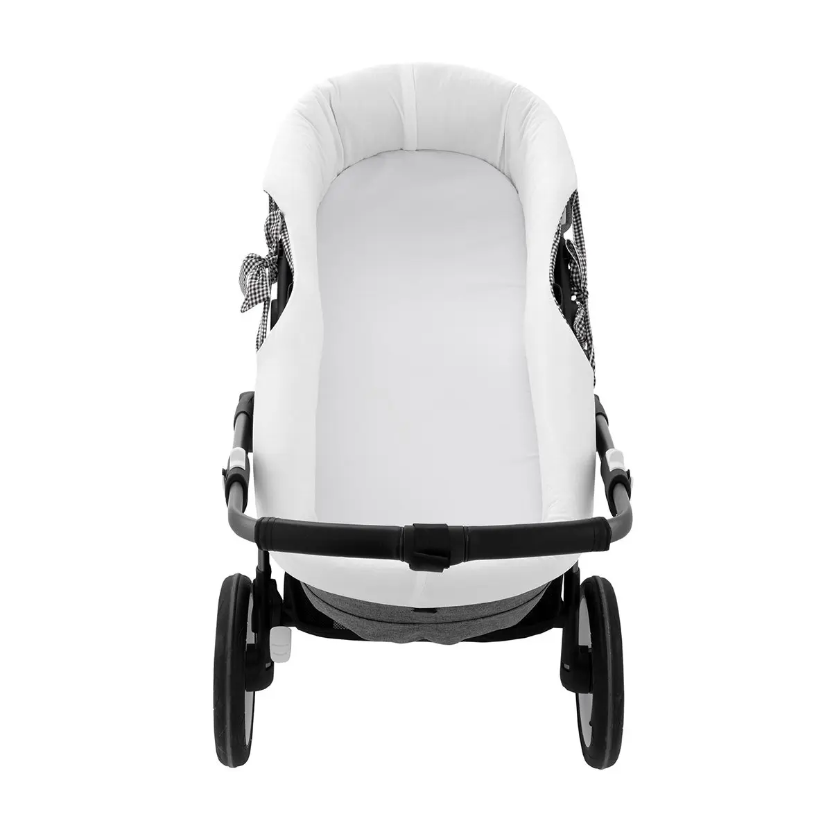 Garnitura reversible para capazo sin capota o con capota sin sistema de cremallera, diseñada para vestir y proteger el interior del capazo de forma sencilla y práctica.