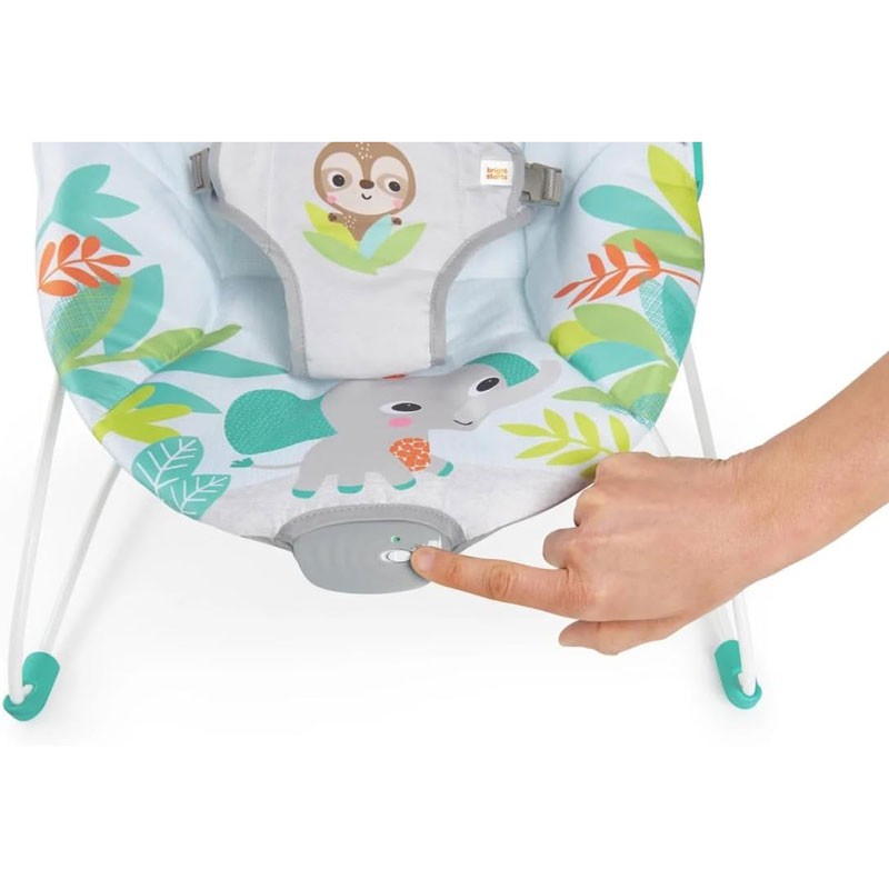 La hamaca vibratoria Rainforest Vibes de Bright Starts es el lugar más divertido y colorido para que el bebé juegue y se relaje. Tu pequeño disfrutará al alcanzar, agarrar y jugar con los dos juguetes colgantes, especialmente con el tucán de cuentas que hace sonidos al moverlo. Los pies antideslizantes y el arnés de 3 puntos aseguran que el bebé esté siempre protegido.