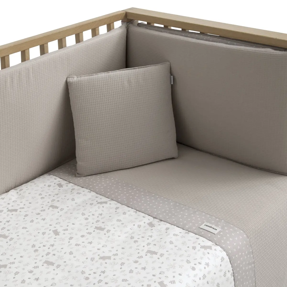 Juego de 2 piezas para vestir la cuna, compuesto por funda nórdica y protector (Relleno incluido)+ cojín decorativo. Hecho en España. Fabricado por Cambrass.