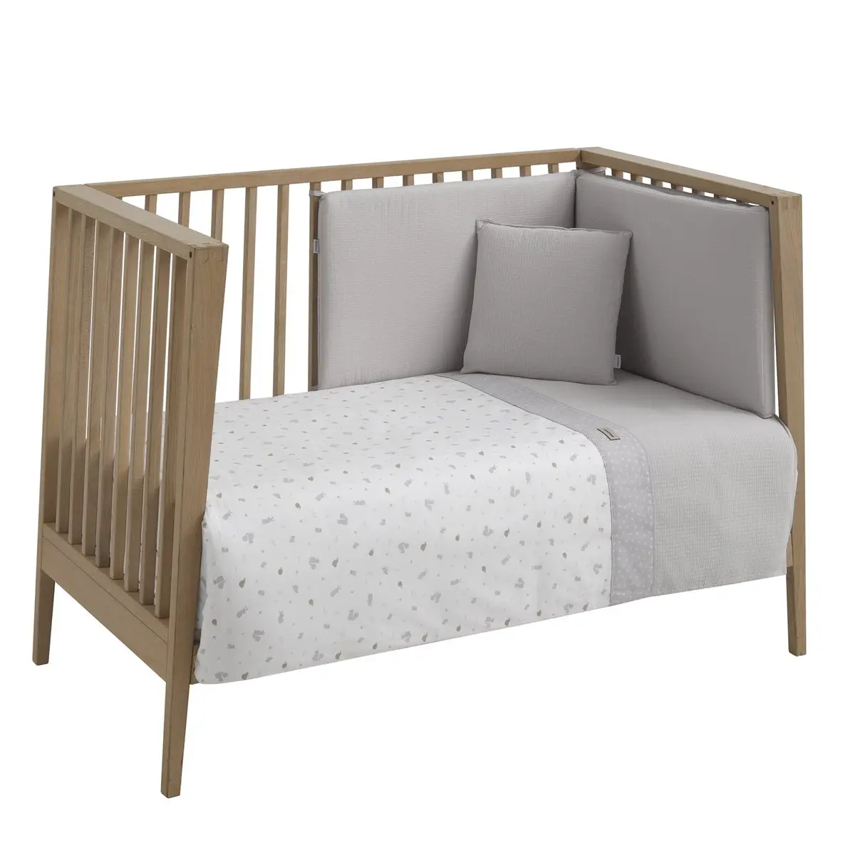 Juego de 2 piezas para vestir la cuna, compuesto por funda nórdica y protector (Relleno incluido)+ cojín decorativo. Hecho en España. Fabricado por Cambrass.