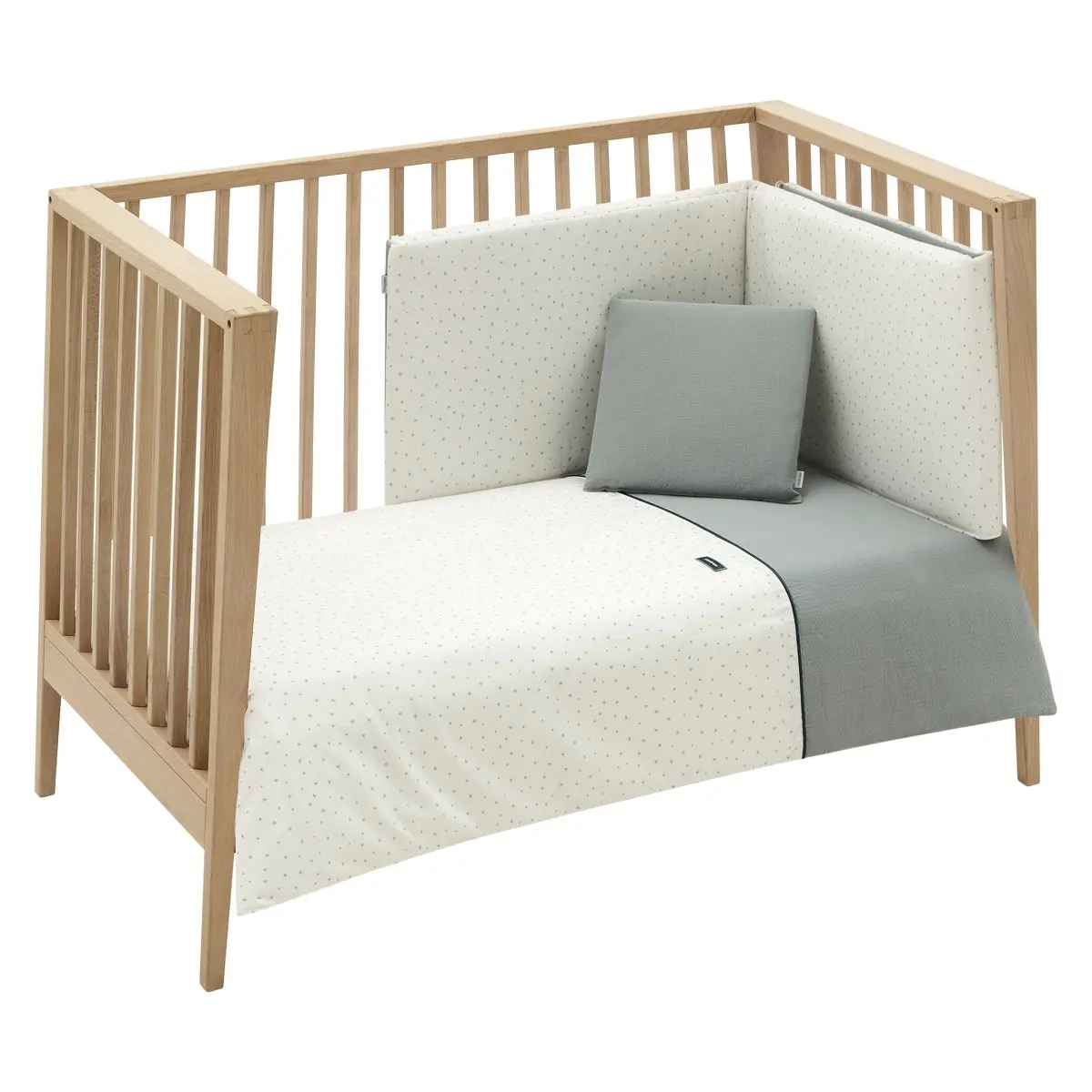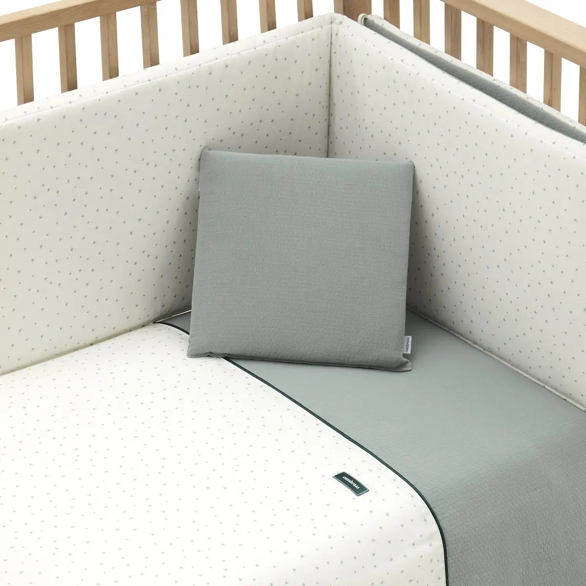 Juego de 2 piezas para vestir la cuna, compuesto por funda nórdica y protector (Relleno incluido)+ cojín decorativo. Hecho en España. Fabricado por Cambrass.