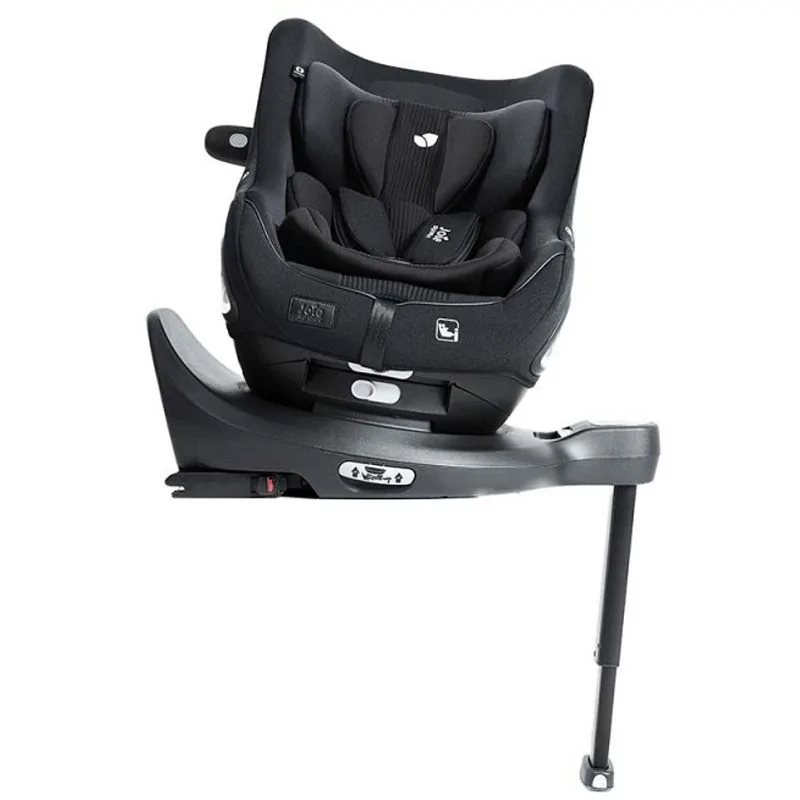 - Giratoria en 360º permitiendo girar la silla hacia la puerta del coche para colocar al niño o ajustar el arnés con facilidad, evitando tensiones en la espalda de los padres para facilitar las entradas y salidas, así como los cambios de orientación a contramarcha o a favor de la marcha.