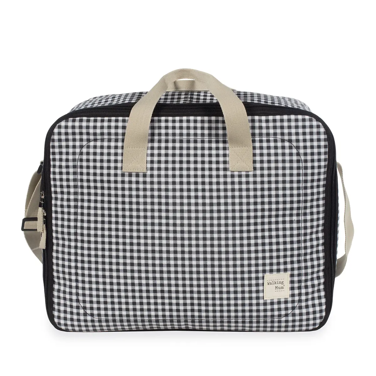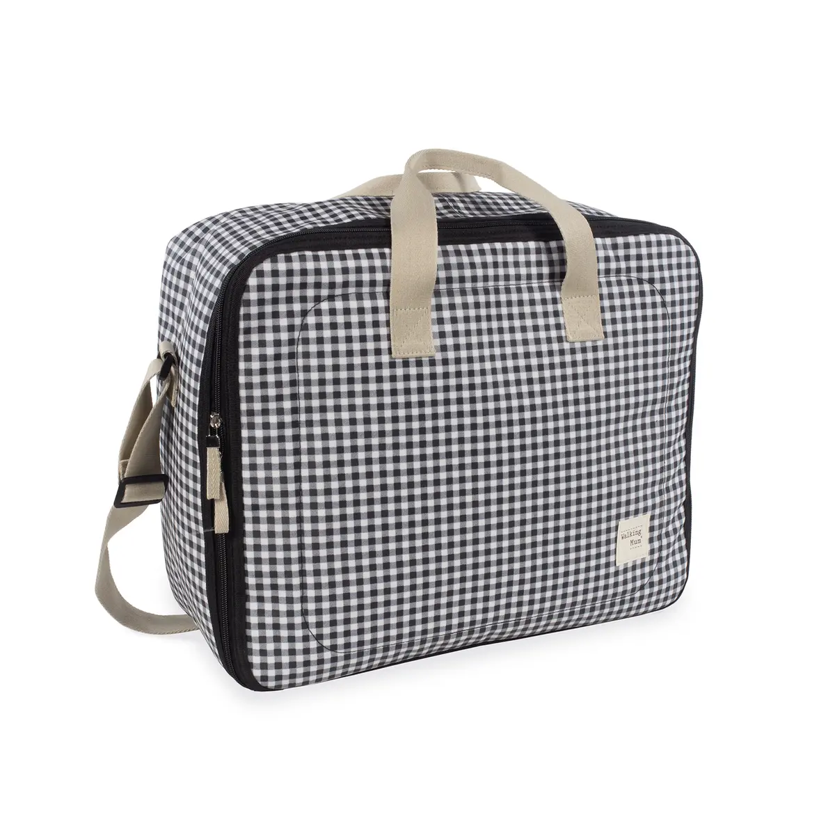 La maleta de bebé I love Vichy negro es un bolso especialmente diseñado para el momento más importante del embarazo, que es la llegada de tu bebé, momento en el que hay un montón de cosas que preparar. Por esto necesitas un espacio cómodo para transportar todo lo necesario para ti, el padre y el niño. Esta maleta de bebé es el modelo perfecto para cubrir todo lo que no puede faltar en este día tan especial. Es cómoda, ligera y manejable con dimensiones rectangulares y apertura práctica para tener todas tus necesidades cubiertas. Cuenta con cierre seguro de cremallera en ambas direcciones que facilitan su apertura, incluye una correa larga para llevar colgada en el hombro y asas cortas de mano. Además en el compartimiento interior tiene un forro a juego con gomas para contener la ropa y mantener todo en su lugar. Gran calidad y mucho estilo. Fabricado en un material resistente y de fácil limpieza a mano o a máquina a 30 °C. Walking Mum protege a tu bebé utilizando los mejores tejidos, libres de colorantes azoicos y sustancias nocivas para la salud. Nuestra colección Walking Mum guarda toda la calidad de la marca Pasito a Pasito pero con un particular sello de estilo urbano y moderno que no pasa desapercibido, para vestir diferente los paseos con tu bebé. Las bolsas de maternidad de esta línea son más sport y prácticas, especialmente pensadas en mamás y papás modernos que aprecian los diseños más actuales y en tendencia sin dejar de lado la calidad y la funcionalidad de los accesorios que complementan y hacen más cómodos todos los paseos con sus bebés. Especificaciones: Materiales: 100 % algodón plastificado. Color: negro. Medidas: 49X37X17 cm.
