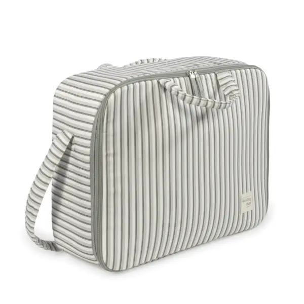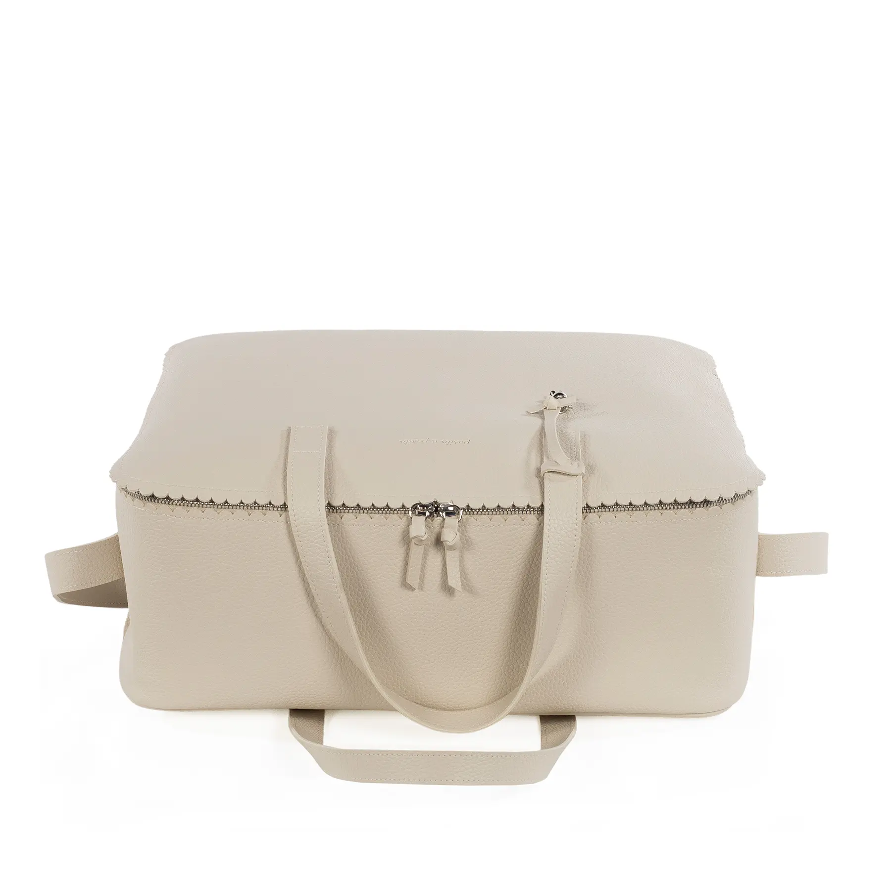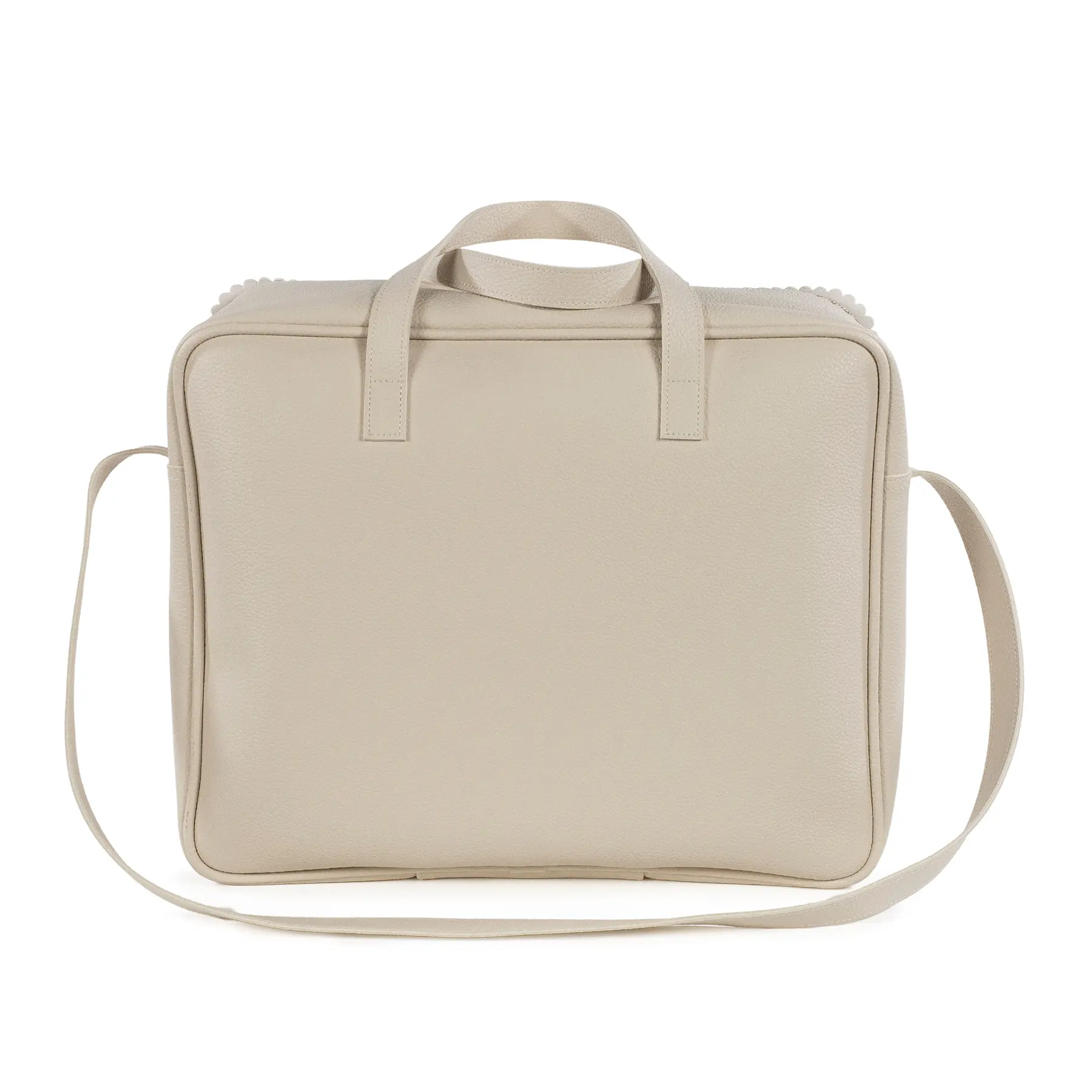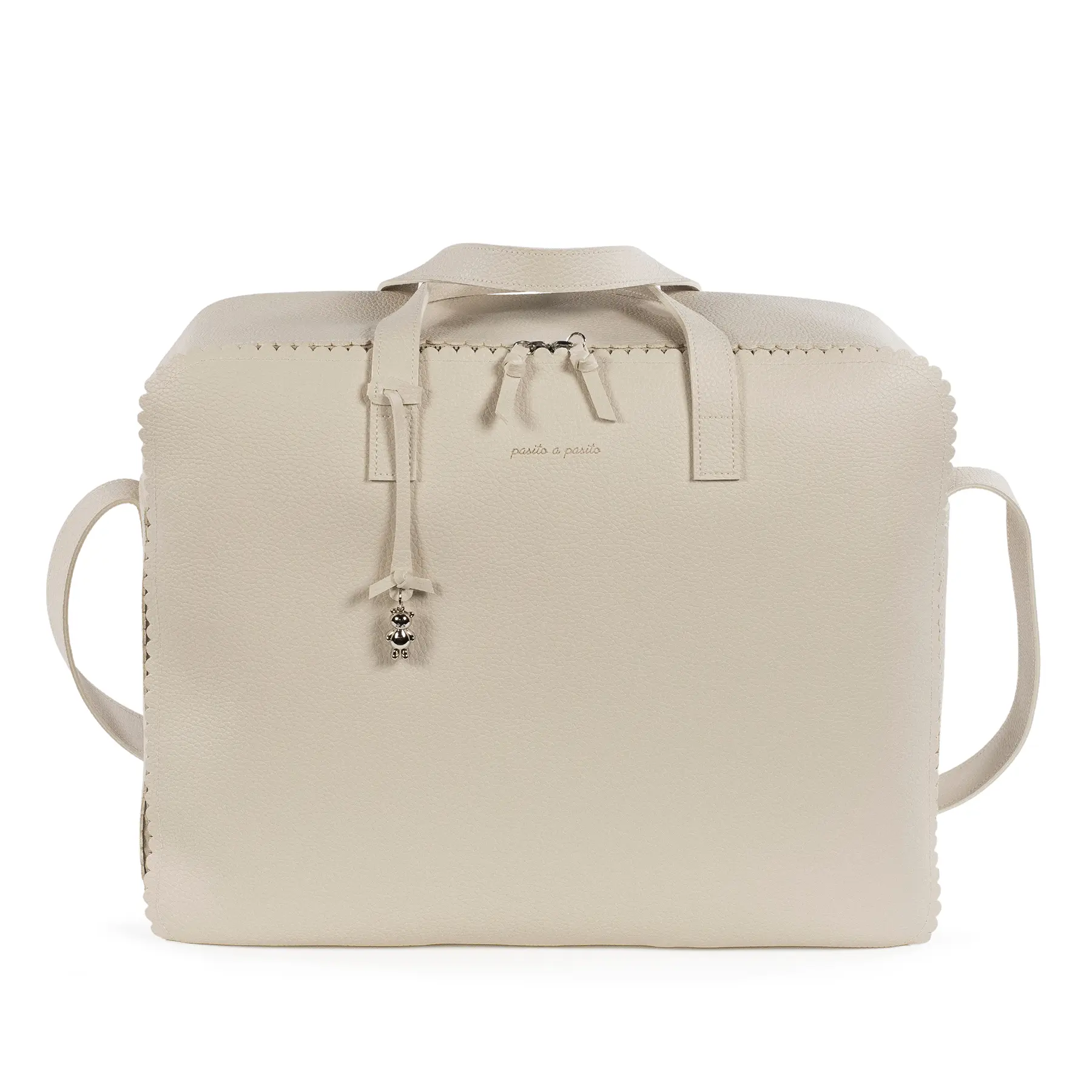 La maleta de bebé Icon Cream de Pasito a pasito es la bolsa perfecta para el hospital/clínica, un modelo único con mucho estilo especialmente pensada para que puedas llevar todo lo que necesitas para ti, el papá y el bebé. Está elaborada en resistente y suave polipiel. Su forma rectangular que brinda comodidad para tener cubiertas todas tus necesidades (mudas o accesorios) durante el día del nacimiento del bebé. Es un diseño simple, moderno y práctico que ofrece gran capacidad para llevar muchas cosas y es de práctica apertura para facilitar la búsqueda de lo que sea que hayas guardado. Viene acondicionada con un asa larga para colgar en el hombro y y dos asas cortas para llevar en la mano si lo prefieres. Acabados de calidad. La maleta de hospital cuenta con un forro interior con gomas para sujetar la ropita y se cierra de forma segura con cremallera de dos lados que permiten abrir la tapa completamente. Fabricada con materiales de gran calidad, libres de colorantes azoicos, ftalatos y sustancias nocivas para la salud. Además se puede lavar a mano o a máquina a temperatura de hasta 30º. Los productos para bebé de Pasito a Pasito cuentan con un diseño muy diferente a todas las demás. Sus colecciones se caracterizan por el trabajo al detallada, pensadas siempre desde un punto de vista práctico. Utilizan materiales de primera calidad para remarcar la elegancia y la armonía en cada una de sus piezas. Nuestros modelos son exclusivos y de estilo inconfundible, pensados en madres actuales que gozan de buen gusto y que aprecian los detalles tanto como nosotros. Especificaciones: Materiales: Eco-leather. Color: Beige. Medidas: 44X36X16 cm.