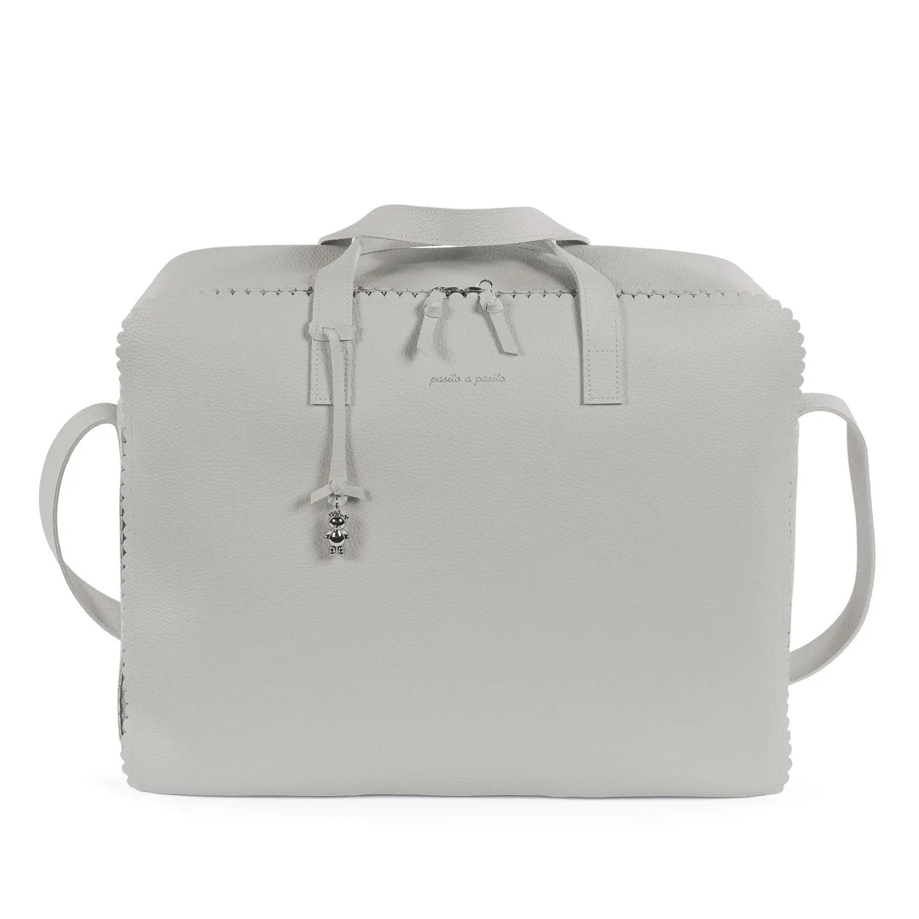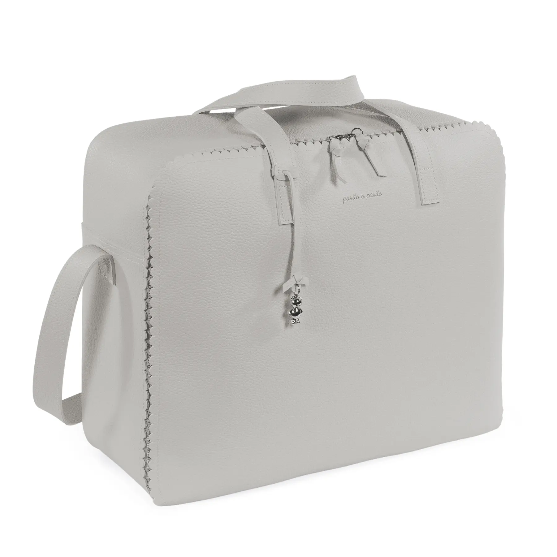 La maleta de bebé Icon Smoke de Pasito a pasito es la bolsa perfecta para el hospital/clínica, un modelo único con mucho estilo especialmente pensada para que puedas llevar todo lo que necesitas para ti, el papá y el bebé. Está elaborada en resistente y suave polipiel. Su forma rectangular que brinda comodidad para tener cubiertas todas tus necesidades (mudas o accesorios) durante el día del nacimiento del bebé. Es un diseño simple, moderno y práctico que ofrece gran capacidad para llevar muchas cosas y es de práctica apertura para facilitar la búsqueda de lo que sea que hayas guardado. Viene acondicionada con un asa larga para colgar en el hombro y y dos asas cortas para llevar en la mano si lo prefieres. Acabados de calidad. La maleta de hospital cuenta con un forro interior con gomas para sujetar la ropita y se cierra de forma segura con cremallera de dos lados que permiten abrir la tapa completamente. Fabricada con materiales de gran calidad, libres de colorantes azoicos, ftalatos y sustancias nocivas para la salud. Además se puede lavar a mano o a máquina a temperatura de hasta 30º. Los productos para bebé de Pasito a Pasito cuentan con un diseño muy diferente a todas las demás. Sus colecciones se caracterizan por el trabajo al detallada, pensadas siempre desde un punto de vista práctico. Utilizan materiales de primera calidad para remarcar la elegancia y la armonía en cada una de sus piezas. Nuestros modelos son exclusivos y de estilo inconfundible, pensados en madres actuales que gozan de buen gusto y que aprecian los detalles tanto como nosotros. Especificaciones: Materiales: Eco-leather. Color: Gris. Medidas: 44X36X16 cm.