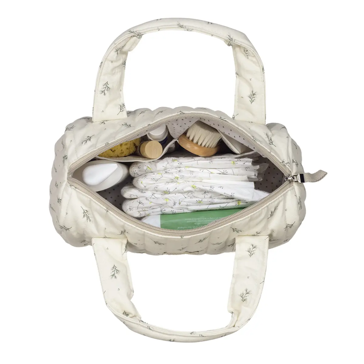 Mini bag Mimosa Verde con estampado floral. Bolsa ideal para llevar todo lo imprescindible para el paseo del bebe. Su diseño simple y cómodo de forma rectangular ofrece comodidad para transportar todos los artículos de tu bebé. Tiene un cierre seguro de cremallera para evitar que algo pueda salirse. Incorpora dos bolsillos para poder tener todo ordenado. Fabricada en algodón 100% con un tratamiento waterproof, de fácil limpieza a mano o a máquina a 30 °C. Walking Mum protege a tu bebé utilizando los mejores tejidos, libres de colorantes azoicos y sustancias nocivas para la salud. Nuestra colección Walking Mum está diseñada con un particular sello de estilo urbano y moderno que no pasa desapercibido, para vestir diferente los paseos con tu bebé. Las bolsas de maternidad de esta línea son más sport y prácticas, especialmente pensadas en mamás y papás modernos que aprecian los diseños más actuales y en tendencia sin dejar de lado la calidad y la funcionalidad de los accesorios que complementan y hacen más cómodos todos los paseos con sus bebés. Especificaciones: Materiales: 100% algodón con tratamiento waterpfoof. Medidas: 31X19X14 cm.
