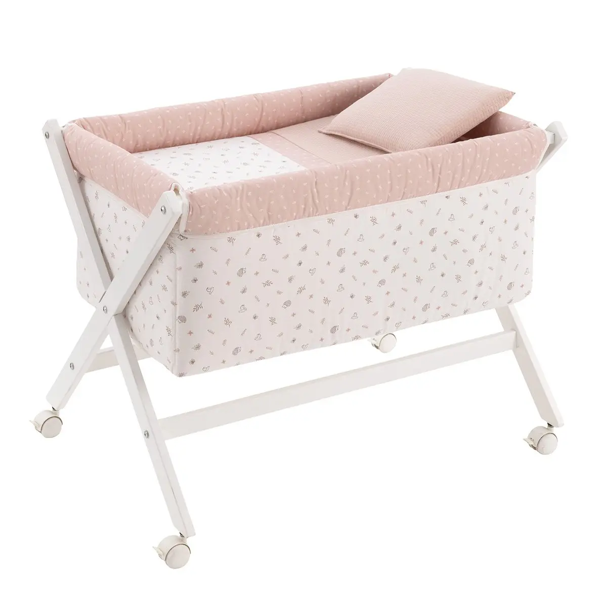 Minicuna tijera madera calma rosa/bco 55x87x74 cm