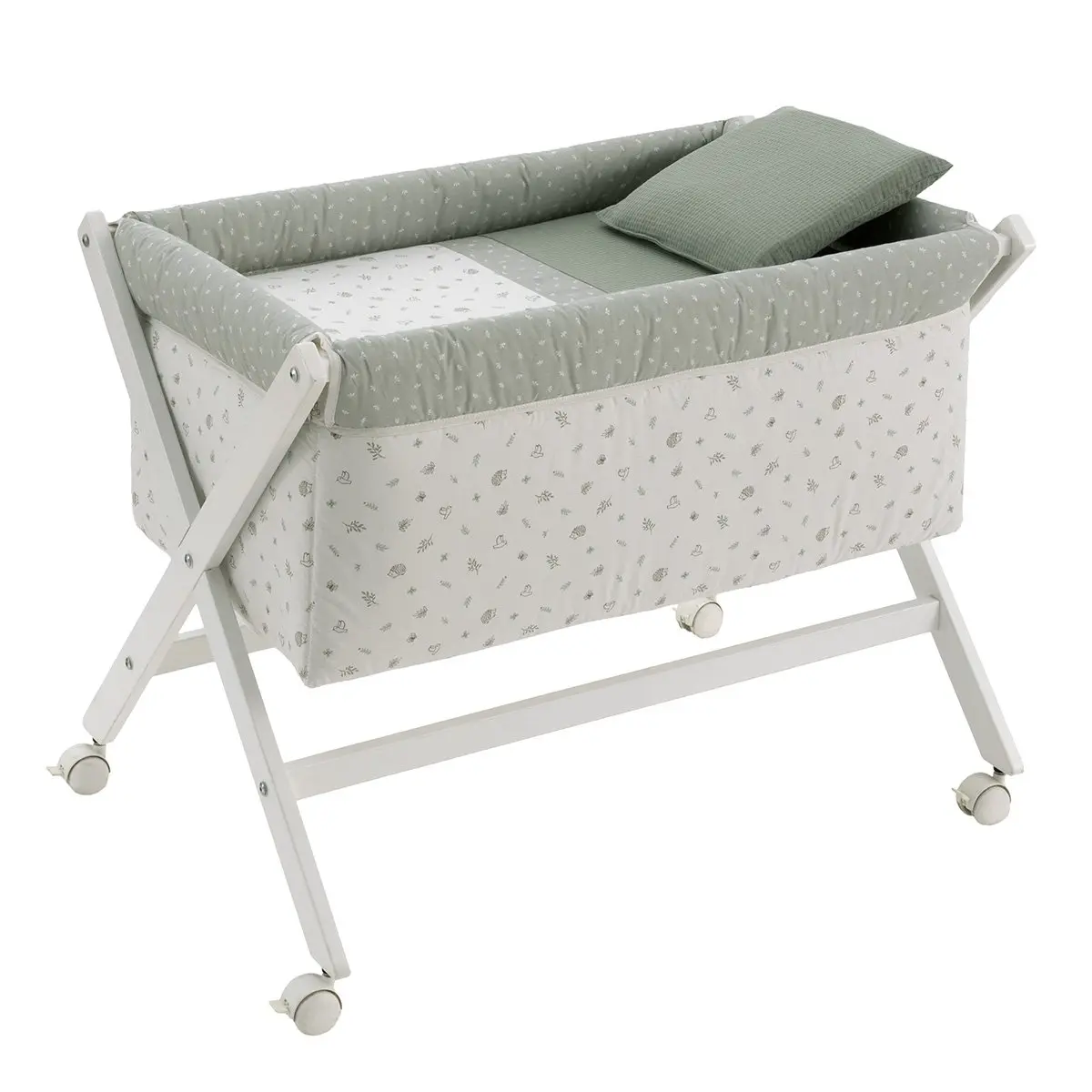 Minicuna tijera madera calma verde/blanco 55x87x74 cm