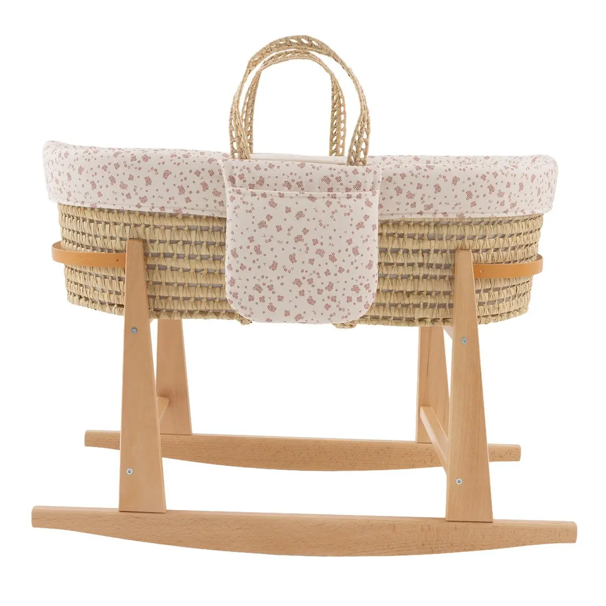 El moisés de palma acolchado de Cambrass + patas de madera, está indicado para los primeros meses de vida del bebé y gracias a sus asas su trasporte es muy sencillo. Fabricado en España. Por Cambrass.