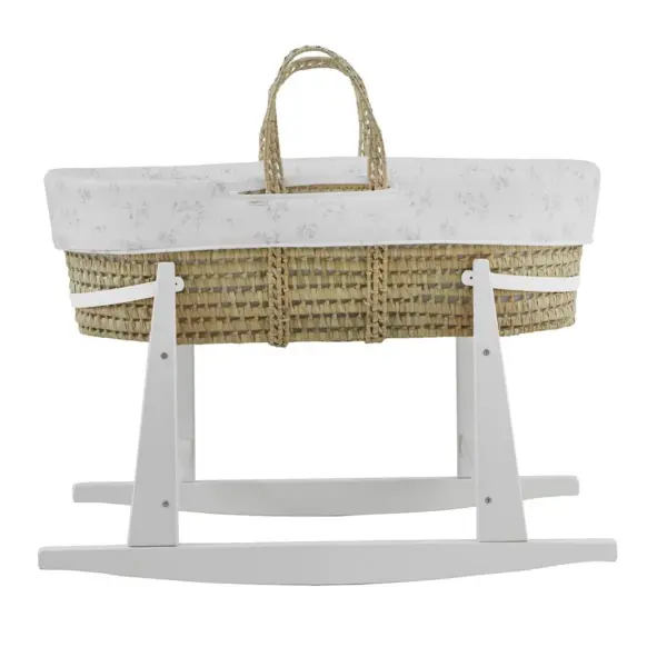 Moisés de mimbre con edredón, cojín, interior acolchado y colchón Happy Forest 10 B|Lino coche/capazo 40×80 – Bimbidreams