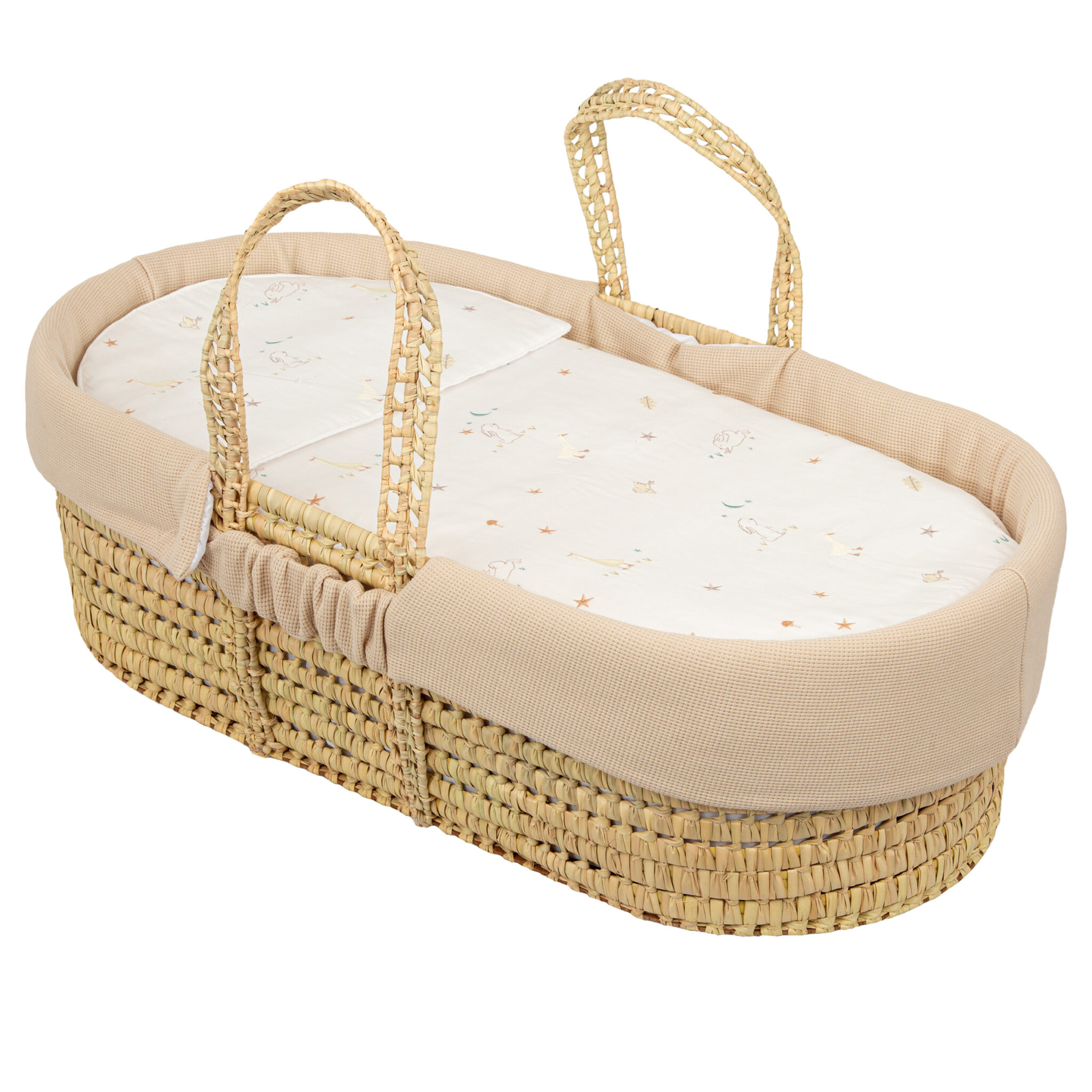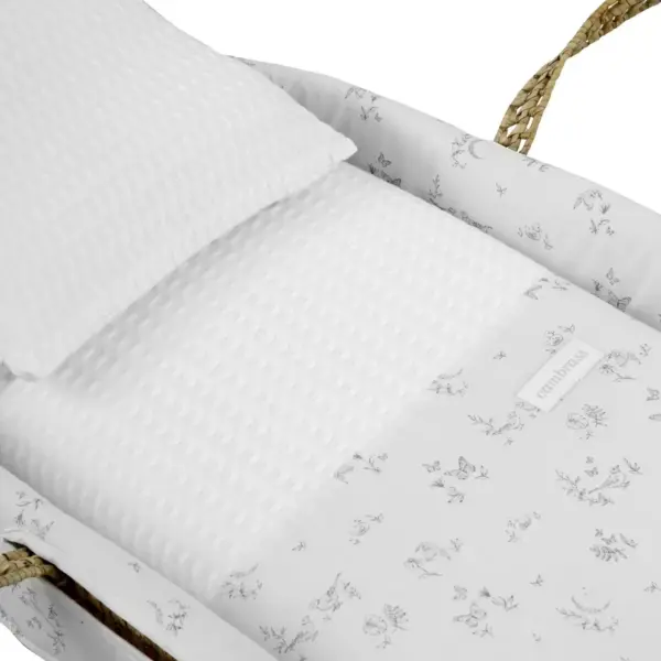 Moisés de mimbre con edredón, cojín, interior acolchado y colchón Happy Forest para Dormir / Capazos y complementos | Bimbidreams