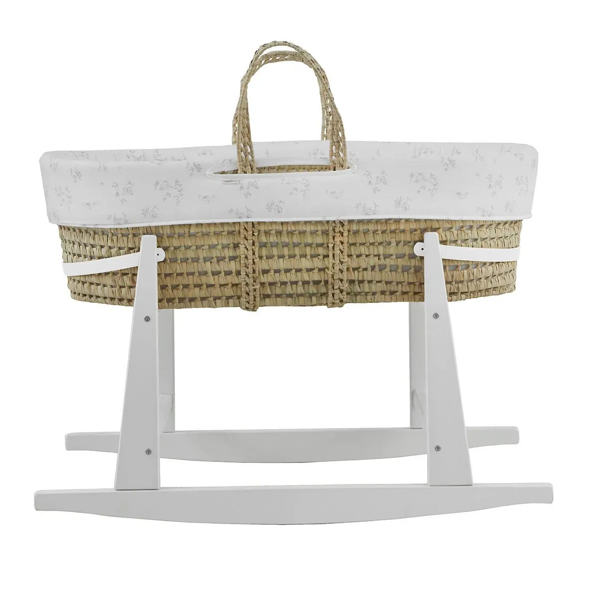 «El moisés de palma acolchado de Cambrass es una opción excepcional para los primeros meses de vida de tu bebé. Su diseño cuidadosamente elaborado ofrece tanto comodidad como funcionalidad para satisfacer las necesidades de tu pequeño durante este período crucial de crecimiento. Fabricado con una base de mimbre, este moisés proporciona una superficie sólida y estable para el descanso de tu bebé. Viene completo con un colchón, una suave colcha, un cómodo cojín y una vestidura coordinable con la decoración de la habitación, añadiendo un toque de estilo y elegancia al entorno.
