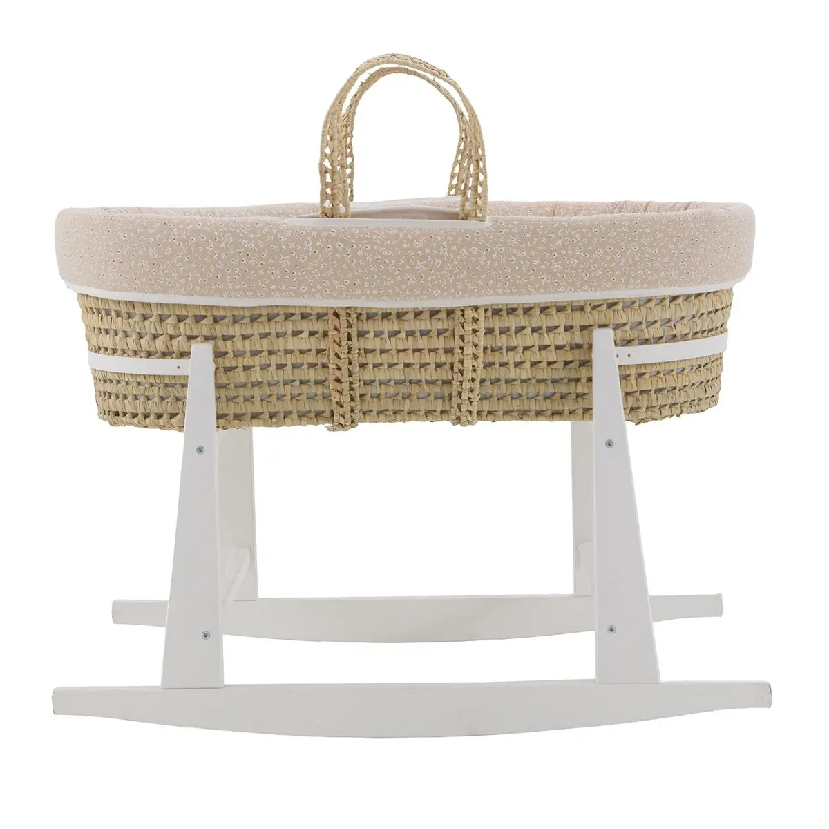 «El moisés de palma acolchado de Cambrass es una opción excepcional para los primeros meses de vida de tu bebé. Su diseño cuidadosamente elaborado ofrece tanto comodidad como funcionalidad para satisfacer las necesidades de tu pequeño durante este período crucial de crecimiento. Fabricado con una base de mimbre, este moisés proporciona una superficie sólida y estable para el descanso de tu bebé. Viene completo con un colchón, una suave colcha, un cómodo cojín y una vestidura coordinable con la decoración de la habitación, añadiendo un toque de estilo y elegancia al entorno.