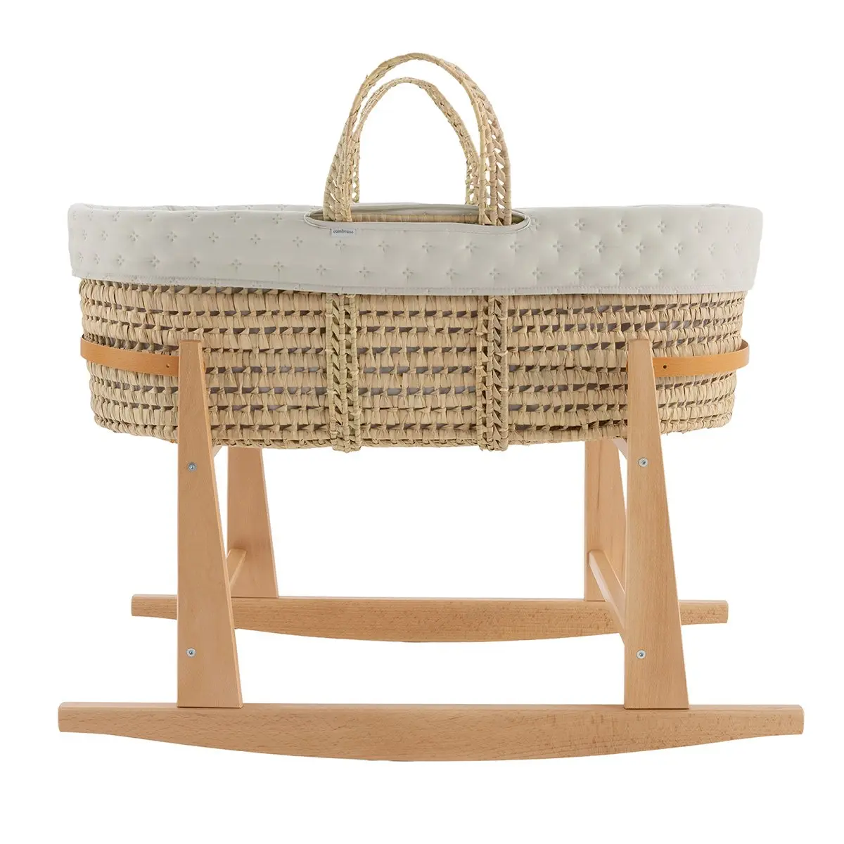 Para complementar este moisés y brindarle aún más versatilidad, el porta Cuco de Cambrass, también conocido como portacapazo, está fabricado en madera natural de alta calidad. Su altura óptima permite una excelente visibilidad del bebé en todo momento, lo que facilita el contacto visual con los adultos desde la cama u otros lugares de la habitación. Además, su función de balancín proporciona un suave movimiento que ayuda a facilitar el sueño de los bebés, promoviendo un ambiente tranquilo y relajado.