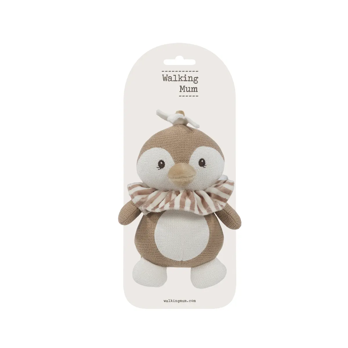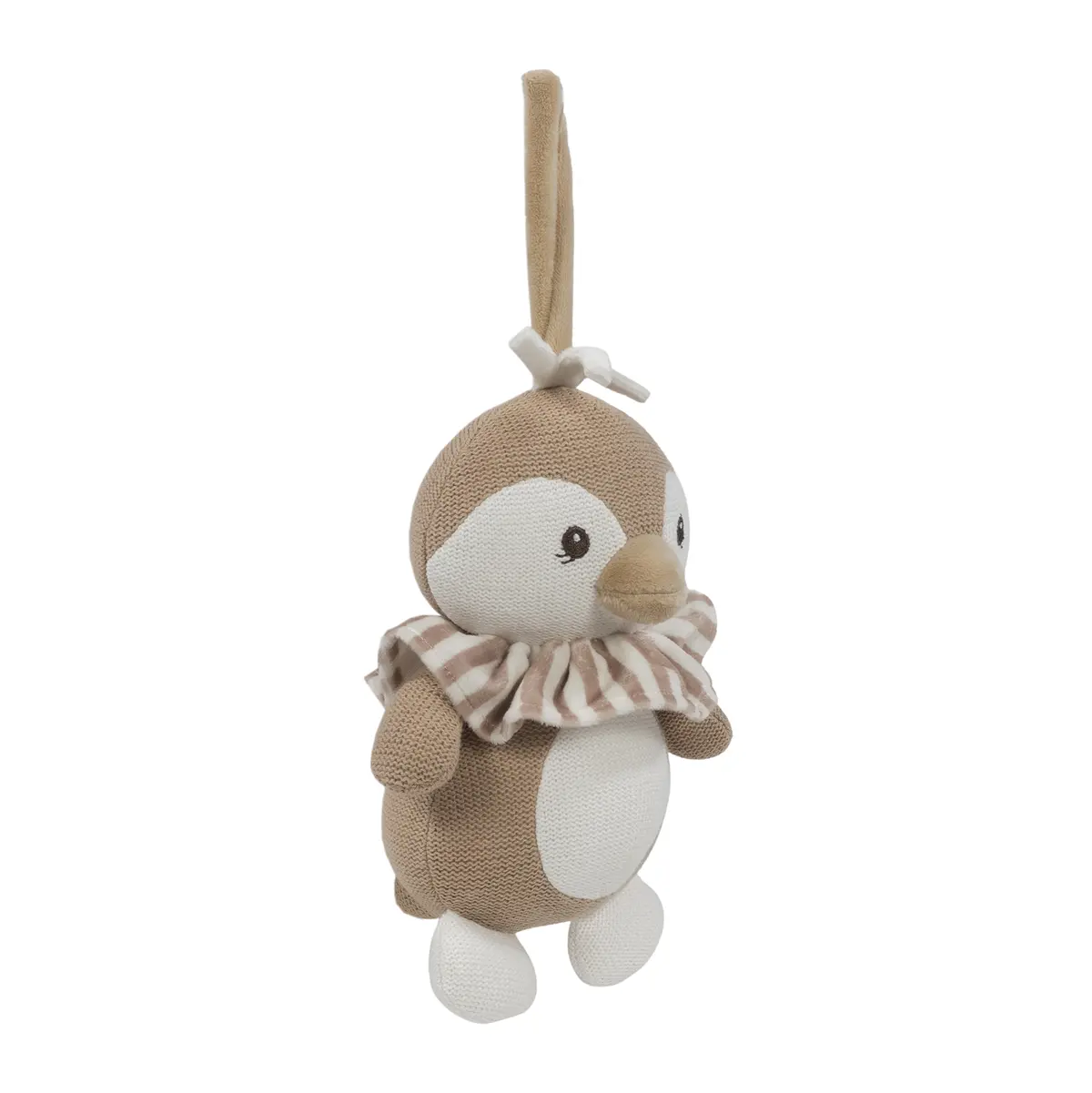 El musical Pingüino Praliné Moka de Walking Mum es el accesorio ideal para relajar y calmar a tu bebé. Diseñado con un adorable pingüino de 25 cm, su suave melodía crea un ambiente de tranquilidad y confort. Perfecto para ayudar a dormir al bebé. Incluye un práctico lazo para sujetarlo en la cuna, el cochecito o la silla de paseo. Confeccionado en tricot ideal para el tacto delicado del bebé. Sin piezas pequeñas ni elementos peligrosos, apto para bebés desde recién nacidos. Favorece el desarrollo emocional y sensorial del bebé. Este peluche de Walking Mum es el compañero ideal para momentos de juego y descanso, aportando calma y dulzura al bebé. Limpieza a mano. Walking Mum protege a tu bebé utilizando los mejores tejidos, libres de colorantes azoicos y sustancias nocivas para la salud. Cumple con la normativa europea EN-71 Seguridad de los juguetes +0 años.