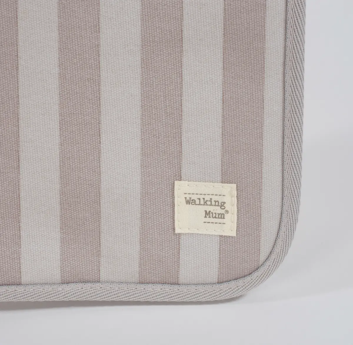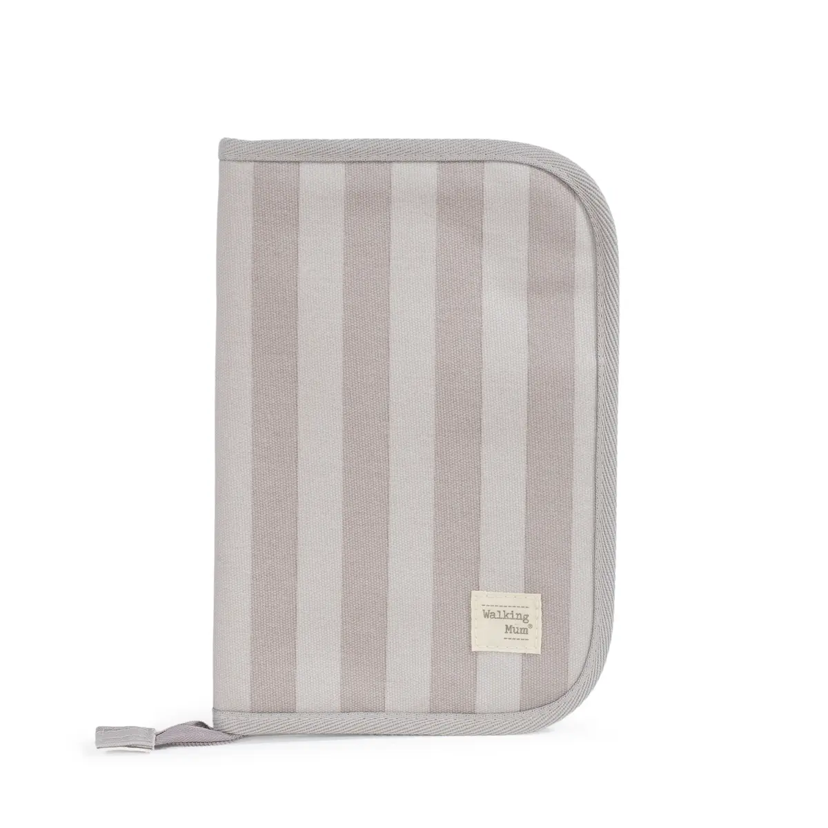 El libro de nacimiento Sintra de rayas beige es una funcional carpeta portadocumentos de diseño a juego con la bolsa de maternidad. Un complemento indispensable para llevar contigo a todas partes que te ayudará a tener ordenada toda la documentación y papeles médicos de tu bebé (vacunas, recetas, partida de nacimiento). Esta funda portadocumentos está elaborada en tela resistente, cuenta con múltiples bolsillos distribuidos en ambos lado para organizar mejor todo. También tiene un práctico cierre de cremallera para guardar seguro el libro de Nacimiento y todos los documentos de tu bebé. Gran calidad y mucho estilo. Fabricado en un material resistente y de fácil limpieza a mano o a máquina a 30 °C. Walking Mum protege a tu bebé utilizando los mejores tejidos, libres de colorantes azoicos y sustancias nocivas para la salud. Nuestra colección Walking Mum guarda toda la calidad de la marca Pasito a Pasito pero con un particular sello de estilo urbano y moderno que no pasa desapercibido, para vestir diferente los paseos con tu bebé. Los accesorios de esta línea son más sport y prácticos, especialmente pensadas en mamás y papás modernos que aprecian los diseños más actuales y en tendencia sin dejar de lado la calidad y la funcionalidad de los complementos que hacen más cómodos todos los paseos con sus bebés. Especificaciones: Materiales: 65% algodón /35% poliéster plastificado. Medidas: 17X25X1 cm.