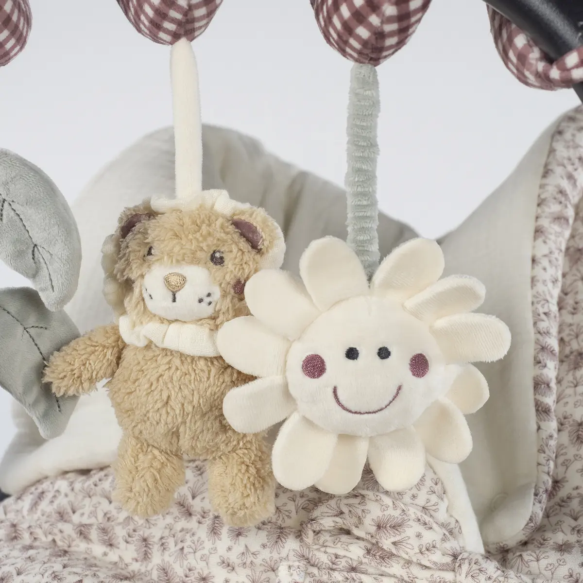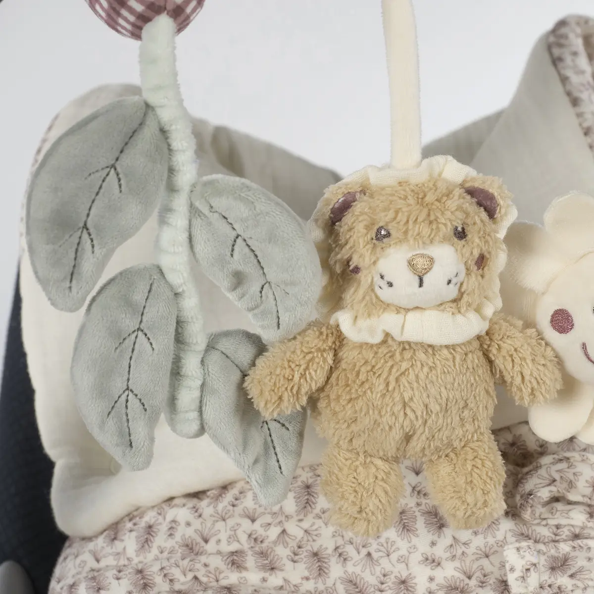 El juguete espiral con león de la colección Gala Cerise de Walking Mum es el accesorio perfecto para estimular y entretener a tu bebé. Diseñado con materiales ultrasuaves como velour y peluche, este juguete es ideal para colgar en el cochecito o la silla del auto, proporcionando horas de diversión y aprendizaje. Fácil de colocar y se adapta a diferentes superficies. Incluye colgantes con diferentes texturas, formas y sonidos para el desarrollo del bebé. Adorable diseño con tonos neutros y elegantes. Sin piezas pequeñas ni elementos peligrosos. Este juguete no solo fomenta la exploración y el desarrollo sensorial, sino que también decora con ternura el espacio de tu bebé. Walking Mum protege a tu bebé utilizando los mejores tejidos, libres de colorantes azoicos y sustancias nocivas para la salud. Cumple con la normativa europea EN-71 Seguridad de los juguetes +0 años.