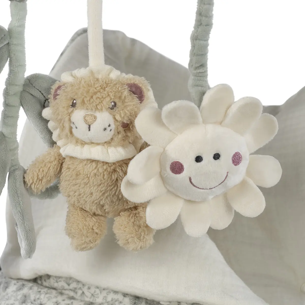 El juguete espiral con león de la colección Gala Mint de Walking Mum es el accesorio perfecto para estimular y entretener a tu bebé. Diseñado con materiales ultrasuaves como velour y peluche, este juguete es ideal para colgar en el cochecito o la silla del auto, proporcionando horas de diversión y aprendizaje. Fácil de colocar y se adapta a diferentes superficies. Incluye colgantes con diferentes texturas, formas y sonidos para el desarrollo del bebé. Adorable diseño con tonos neutros y elegantes. Sin piezas pequeñas ni elementos peligrosos. Este juguete no solo fomenta la exploración y el desarrollo sensorial, sino que también decora con ternura el espacio de tu bebé. Walking Mum protege a tu bebé utilizando los mejores tejidos, libres de colorantes azoicos y sustancias nocivas para la salud. Cumple con la normativa europea EN-71 Seguridad de los juguetes +0 años.