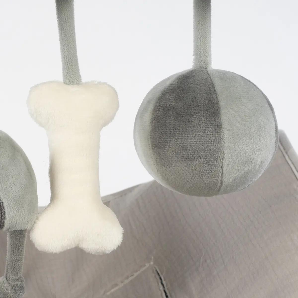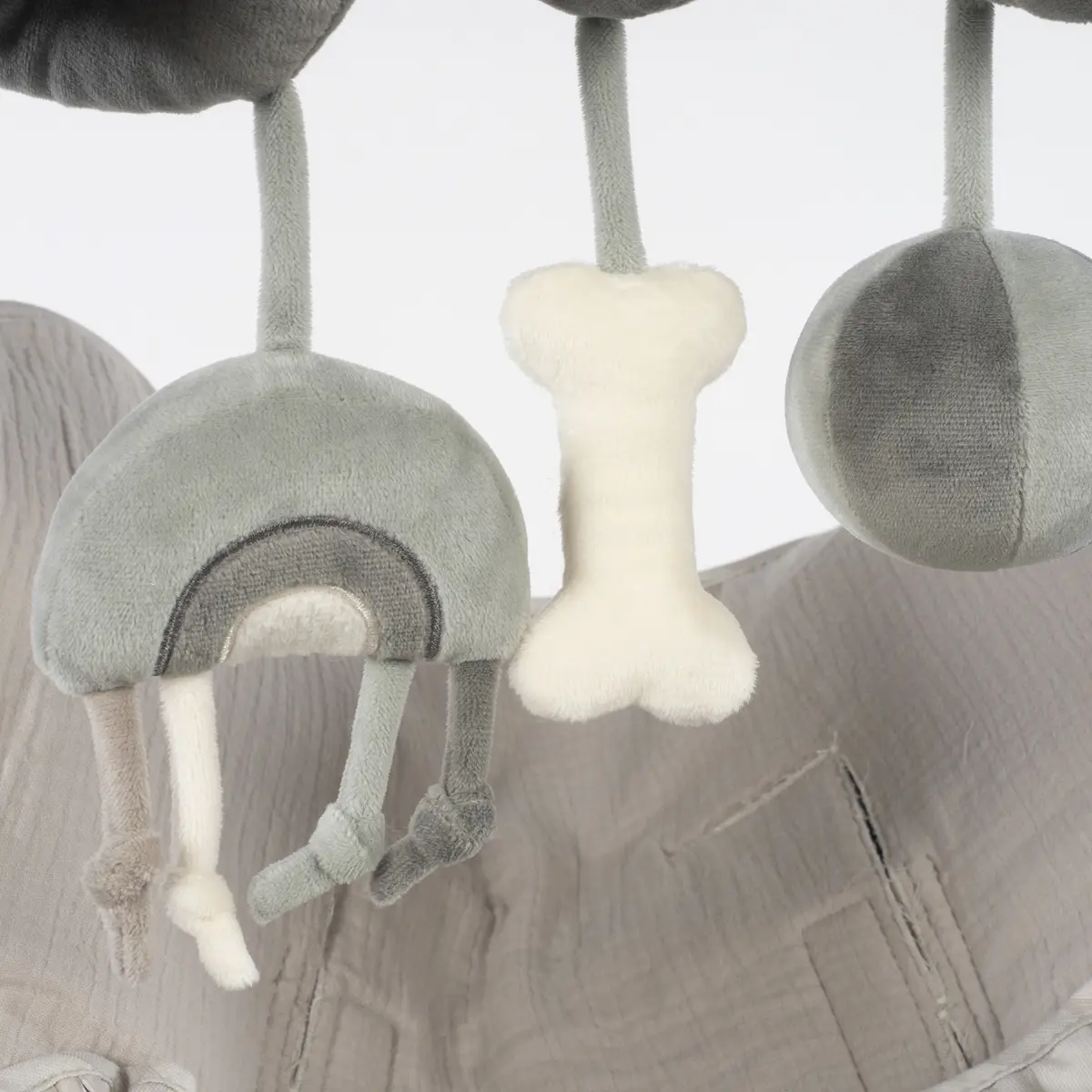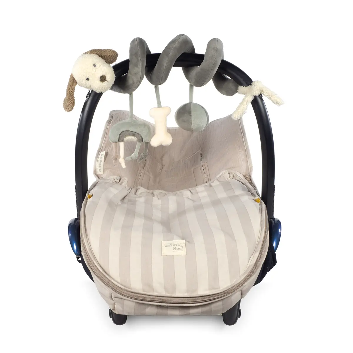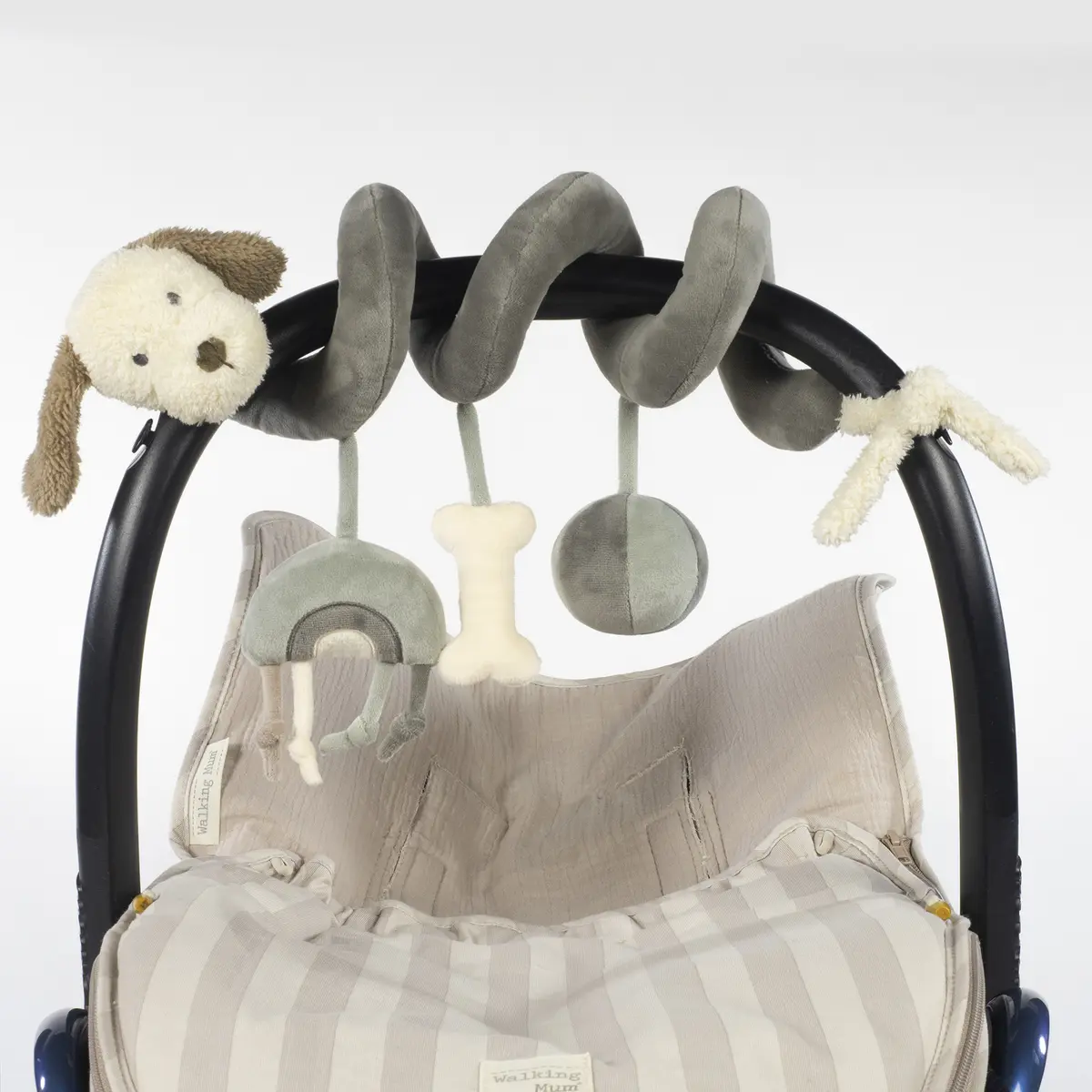 El juguete espiral con perrito de la colección Sintra en verde/gris de Walking Mum es el accesorio perfecto para estimular y entretener a tu bebé. Diseñado con materiales ultrasuaves como velour y peluche, este juguete es ideal para colgar en el cochecito o la silla del auto, proporcionando horas de diversión y aprendizaje. Fácil de colocar y se adapta a diferentes superficies. Incluye colgantes con diferentes texturas, formas y sonidos para el desarrollo del bebé. Adorable diseño con tonos neutros y elegantes. Sin piezas pequeñas ni elementos peligrosos. Este juguete no solo fomenta la exploración y el desarrollo sensorial, sino que también decora con ternura el espacio de tu bebé. Walking Mum protege a tu bebé utilizando los mejores tejidos, libres de colorantes azoicos y sustancias nocivas para la salud. Cumple con la normativa europea EN-71 Seguridad de los juguetes +0 años.