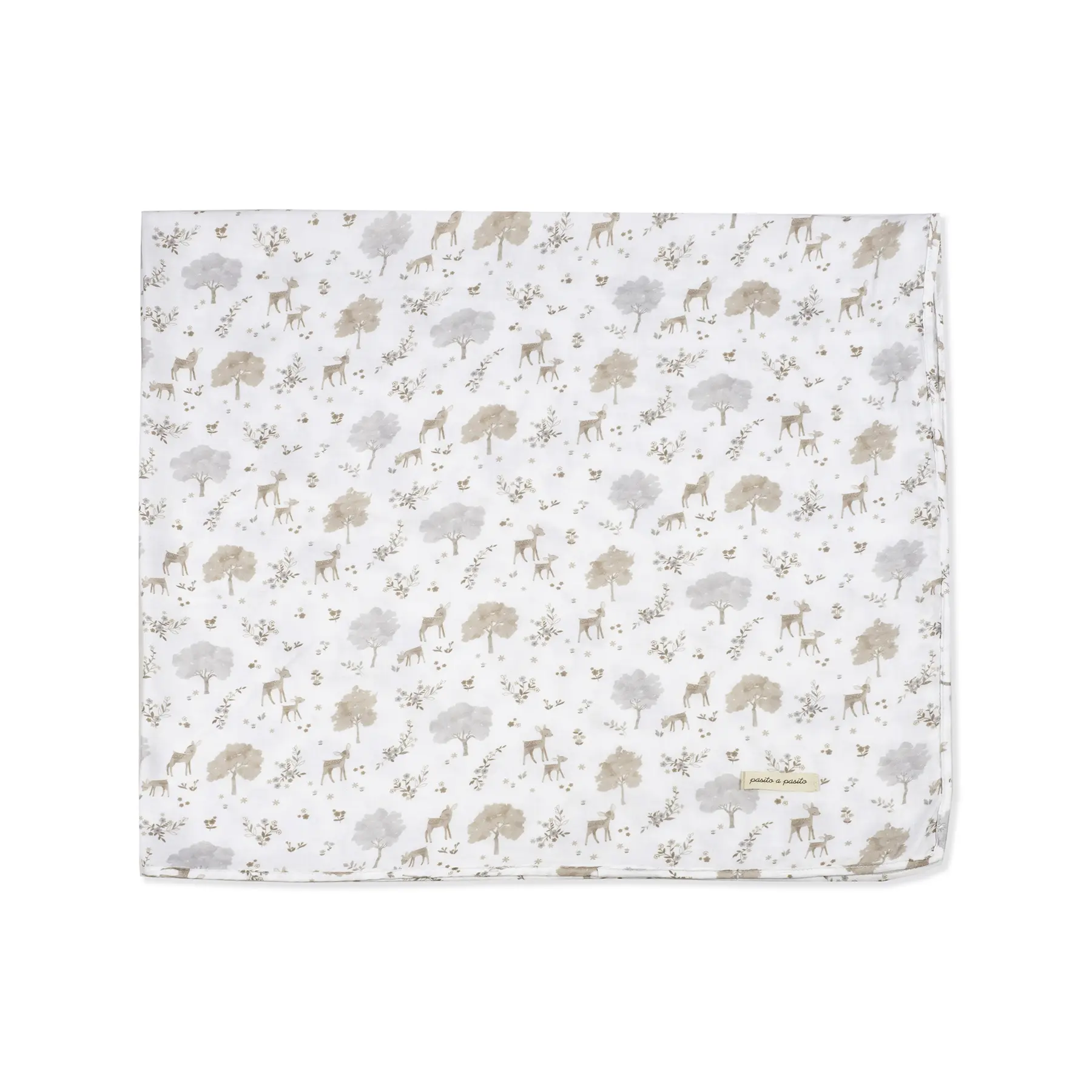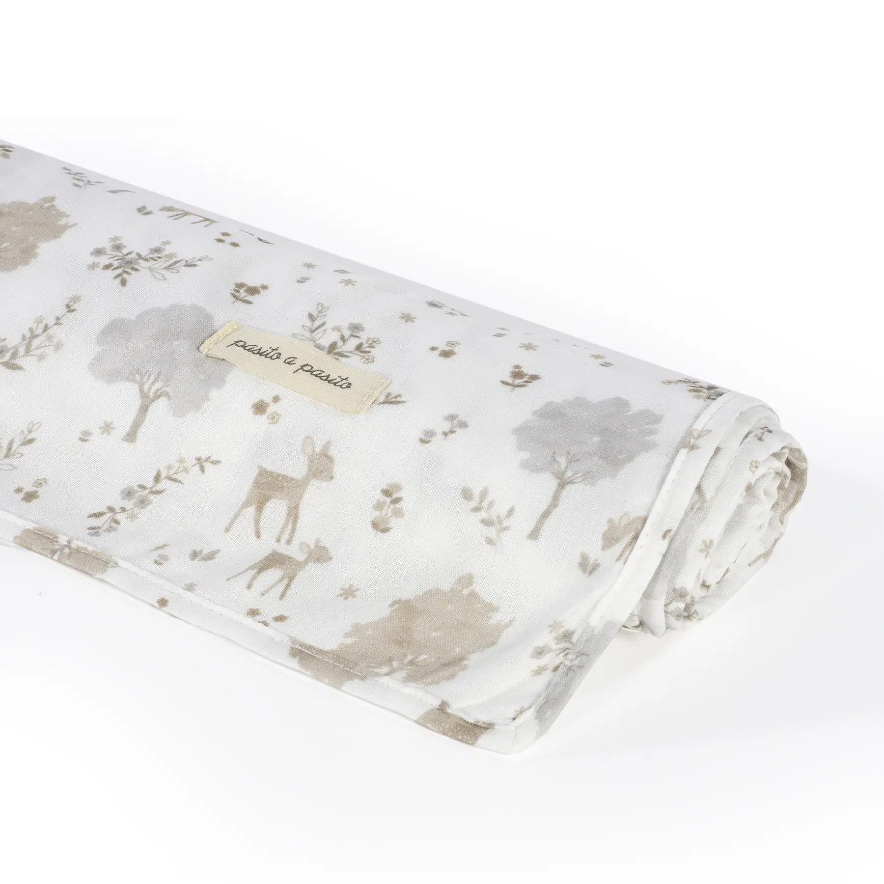 Este set de sábana para capazo o moisés Nara de Pasito a Pasito es ideal para garantizar el descanso y bienestar de tu bebé desde el primer día. Incluye una sábana bajera ajustable, confeccionada en muselina de algodón 100%, un tejido extra suave y transpirable, perfecto para la delicada piel del recién nacido. Además, incorpora una muselina estampada de ciervos y árboles en tonos neutros de 120×120 cm, elaborada con una mezcla de 70% bambú y 30% algodón, ofreciendo una textura ultraligera, transpirable y versátil, ideal para arrullar al bebé, protegerlo del sol o como mantita ligera en cualquier momento. Estampado en tonos neutros con motivos de ciervos y árboles, combinando con cualquier estilo. Materiales delicados con la piel del bebé, ideales para un descanso seguro y placentero. Fácil lavado y mantenimiento, manteniendo su suavidad lavado tras lavado. Este set de sábana bajera y muselina Pasito a Pasito es un imprescindible en la canastilla del bebé, combinando calidad, funcionalidad y diseño. Este conjunto es ideal para mantener a tu bebé cómodo y protegido, con el estilo y calidad que caracteriza a Pasito a Pasito. Todas nuestras fundas están fabricadas conforme a las más exigentes normativas europeas, con materiales de gran calidad, libres de colorantes azoicos, ftalatos y sustancias nocivas para la salud. Tela de fácil limpieza, se recomienda lavar a máquina a 30º. Los productos para bebé de Pasito a Pasito cuentan con un diseño muy diferente a todas las demás. Sus colecciones se caracterizan por el trabajo al detallada, pensadas siempre desde un punto de vista práctico. Utilizan materiales de primera calidad para remarcar la elegancia y la armonía en cada una de sus piezas. Nuestros modelos son exclusivos y de estilo inconfundible, pensados en las madres actuales que gozan de buen gusto y que aprecian los detalles tanto como nosotros. Especificaciones: Materiales: 100% algodón. Tamaño universal.
