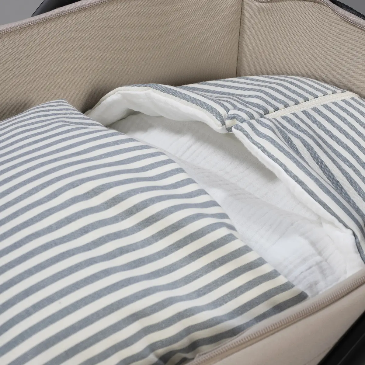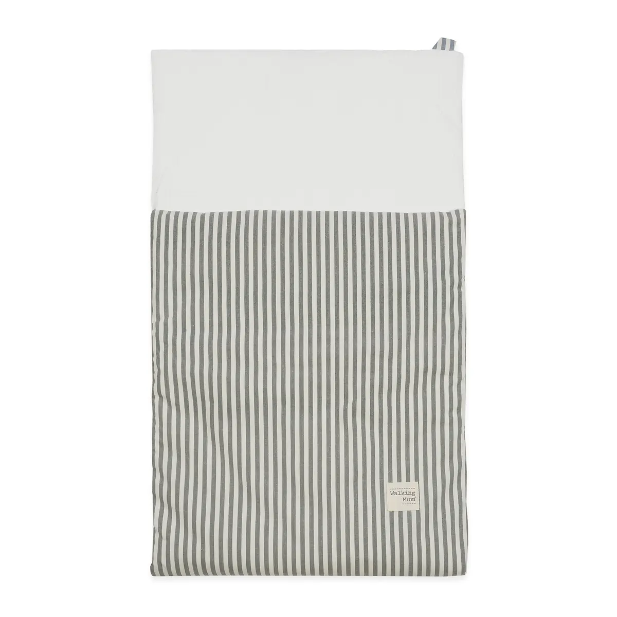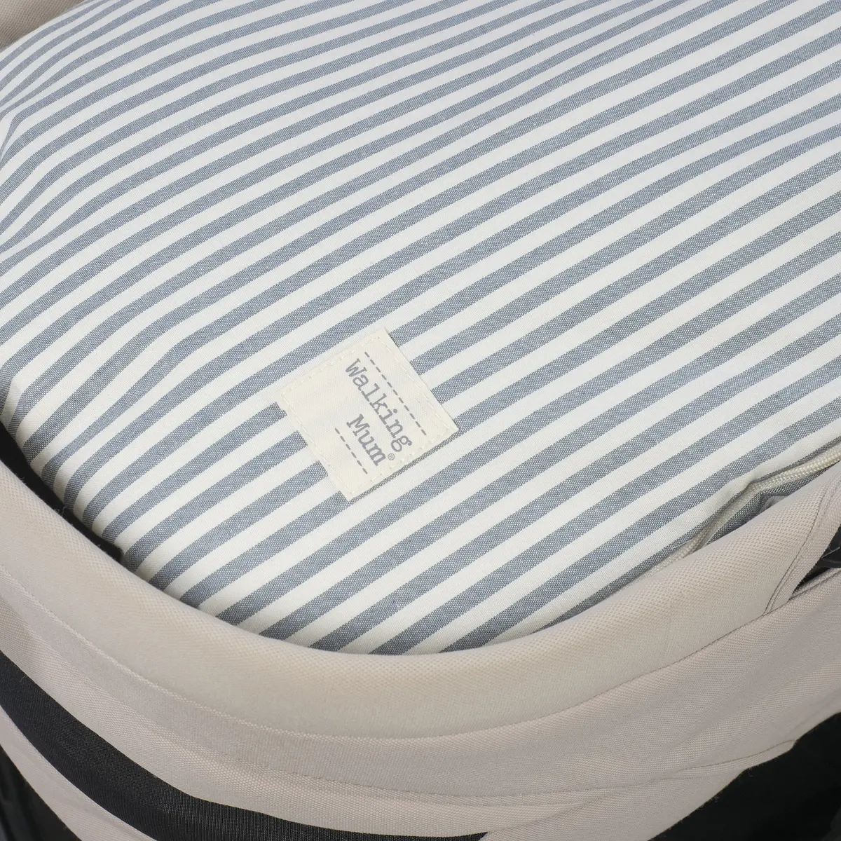 El saco arrullo de verano Praliné Rayas Matcha está pensado para envolver al bebé con suavidad y frescura desde sus primeros días. Su delicado estampado de rayas en tono matcha, natural y sereno, aporta un estilo atemporal que encaja a la perfección en cualquier ambiente. Confeccionado con material exterior resitente y un interior de muselina lisa 100% algodón, de fácil limpieza a mano o a máquina a 30 °C, es ligero, transpirable y especialmente agradable al contacto con la piel del bebé. Su relleno extraíble permite adaptarlo fácilmente a la temperatura, haciéndolo ideal para los meses más cálidos. Gracias a su TOG 1, este arrullo es perfecto para climas templados o de verano, ayudando a mantener una temperatura confortable sin exceso de calor. Su formato es ideal para usar en la cuna, el moisés o para acunar al bebé en brazos con total comodidad. Un básico delicado, práctico y lleno de calma, pensado para acompañar los primeros sueños del bebé. Walking Mum protege a tu bebé utilizando los mejores tejidos, libres de colorantes azoicos y sustancias nocivas para la salud. Nuestra colección Walking Mum está diseñada con un particular sello de estilo urbano y moderno que no pasa desapercibido, para vestir diferente los paseos con tu bebé. Los accesorios de esta línea son más sport y prácticos, especialmente pensados en mamás y papás modernos que aprecian los diseños más actuales y en tendencia sin dejar de lado la calidad y la funcionalidad de los complementos que hacen más cómodos todos los paseos con sus bebés. Especificaciones: Materiales: exterior 65% algodón/35% poliéster – Interior 100% algodón. Medidas 44×78 cm. TOG 1