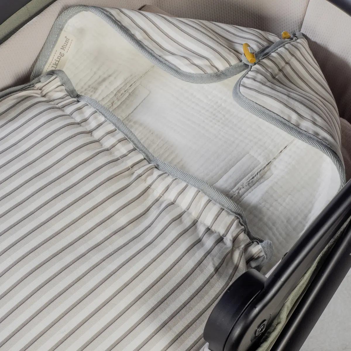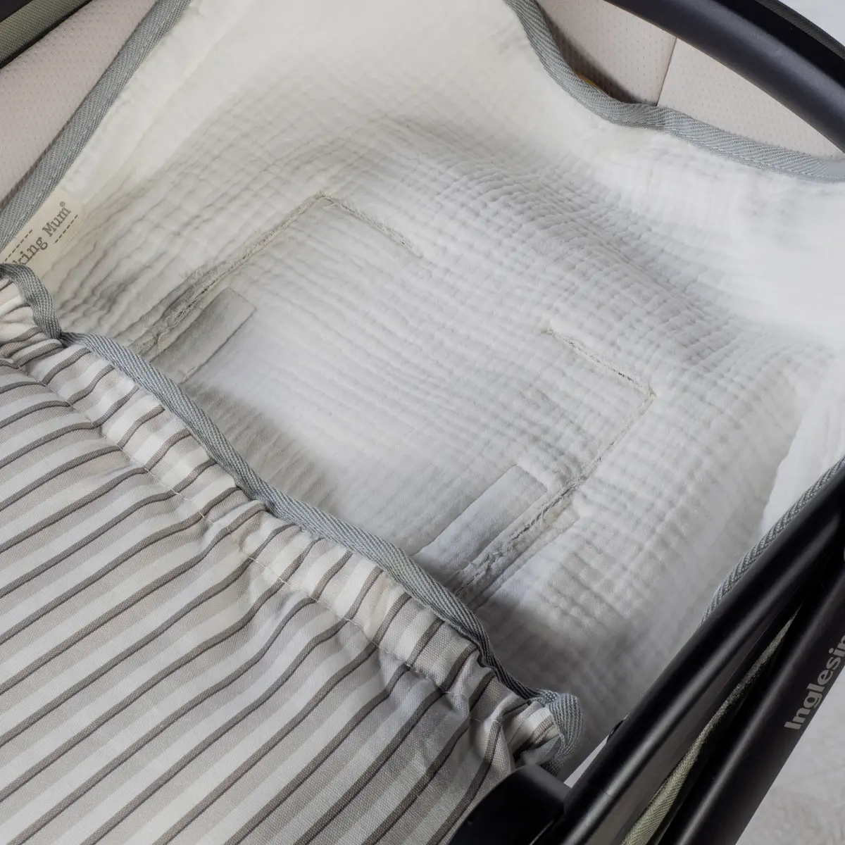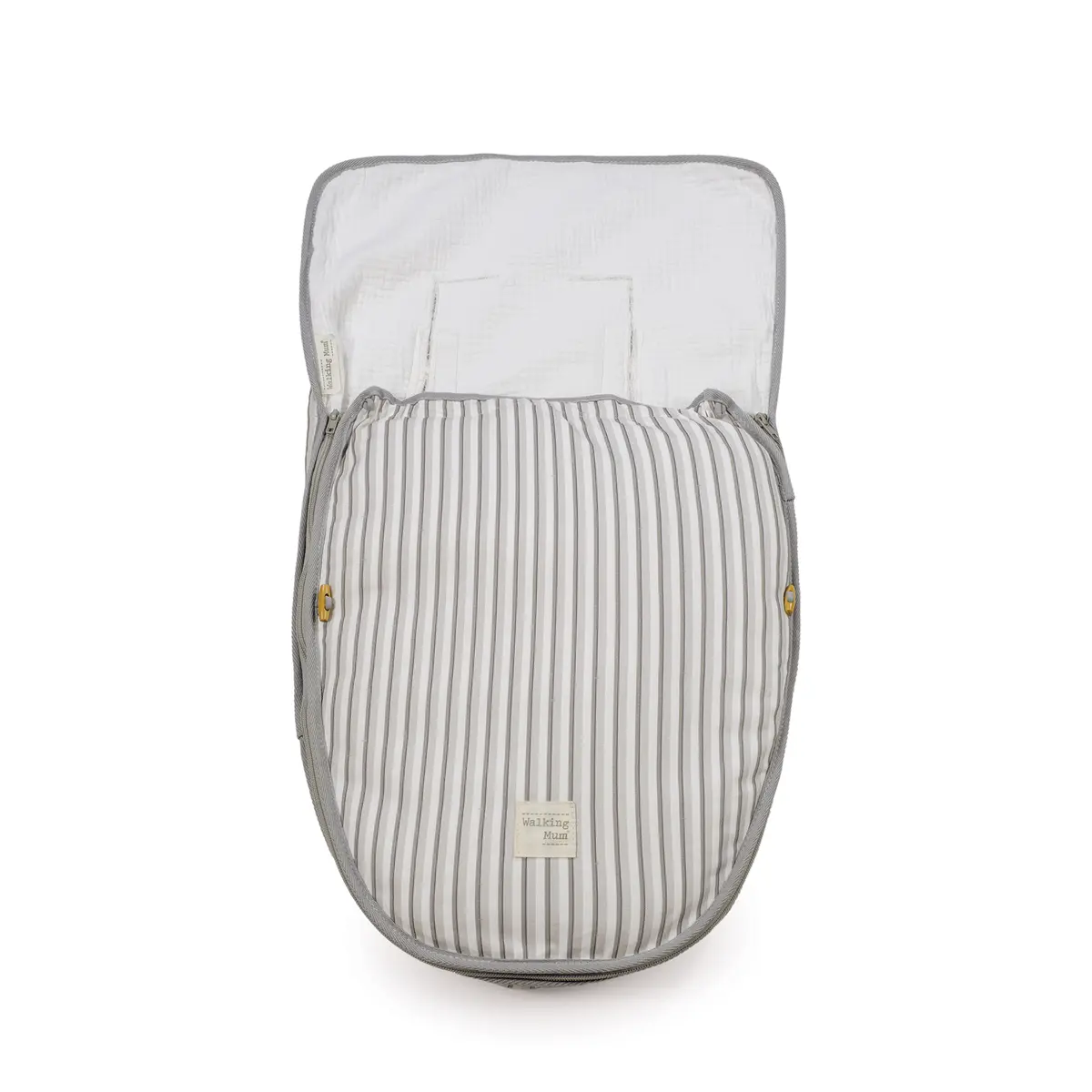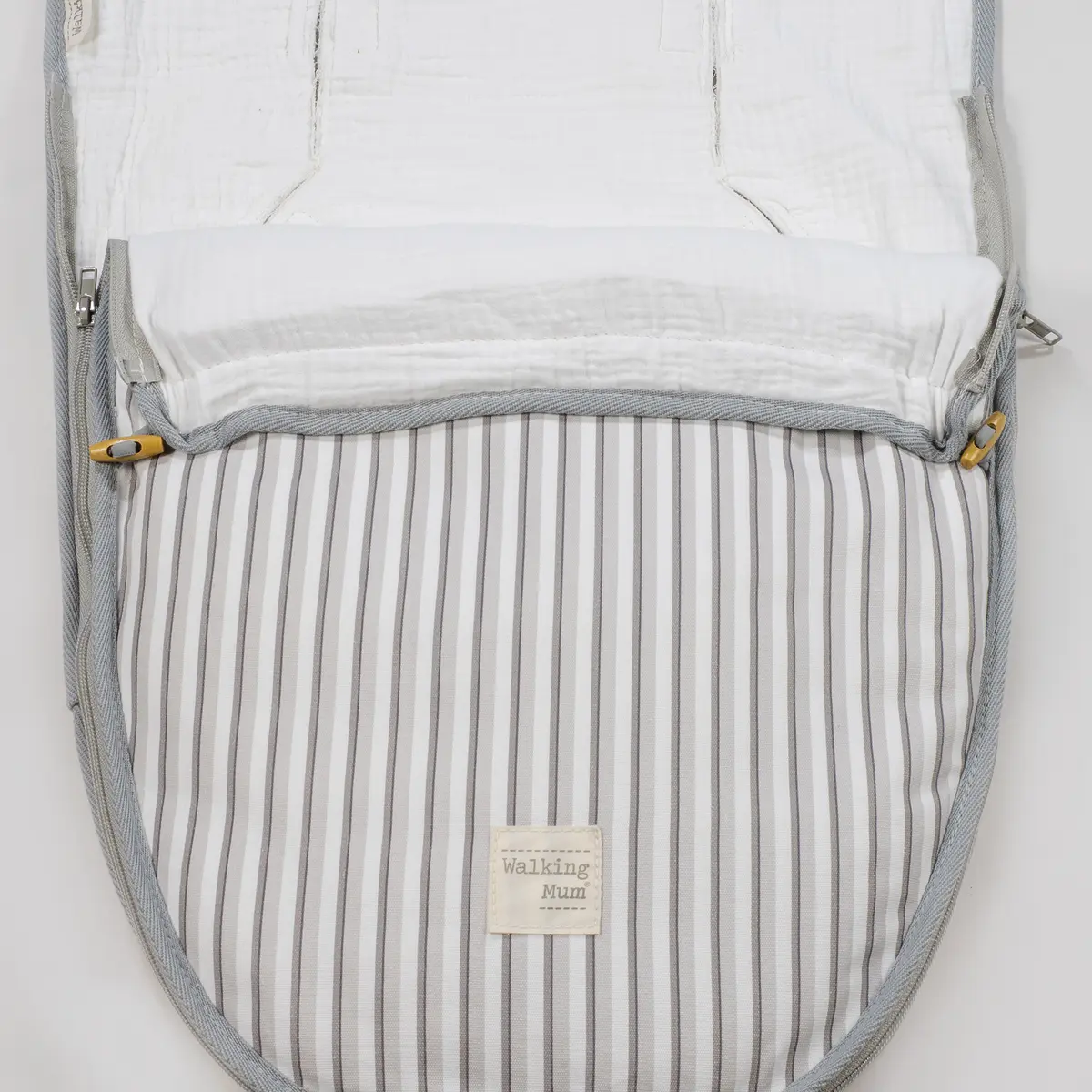Funda con saco Botton con estampado de rayas. Está fabricado con una suave muselina en el interior 100% algodón. Es ideal para cuco y portabebé. Dispone de varias aperturas (ojales) y ajustes para adaptarla a la mayoría de los Portabebés. Con este saco tu bebé estará cómodo durante los meses de primavera y de otoño. Trasera con material anti-sudoración que evita la sudoración excesiva del bebe y protege la silla haciendo el paseo más confortable. Puedes moverlo del carro a la cuna sin incomodarlo ni perturbar sus dulces sueños. Relleno extraíble. Gran calidad y mucho estilo. Fabricado en materiales resistentes y de fácil limpieza a mano o a máquina a 30 °C. Walking Mum protege a tu bebé utilizando los mejores tejidos, libres de colorantes azoicos y sustancias nocivas para la salud. Nuestra colección Walking Mum guarda toda la calidad de la marca Pasito a Pasito pero con un particular sello de estilo urbano y moderno que no pasa desapercibido, para vestir diferente los paseos con tu bebé. Los accesorios de esta línea son más sport y prácticos, especialmente pensados en mamás y papás modernos que aprecian los diseños más actuales y en tendencia sin dejar de lado la calidad y la funcionalidad de los complementos que hacen más cómodos todos los paseos con sus bebés.Medidas: 40 x 80 cm.