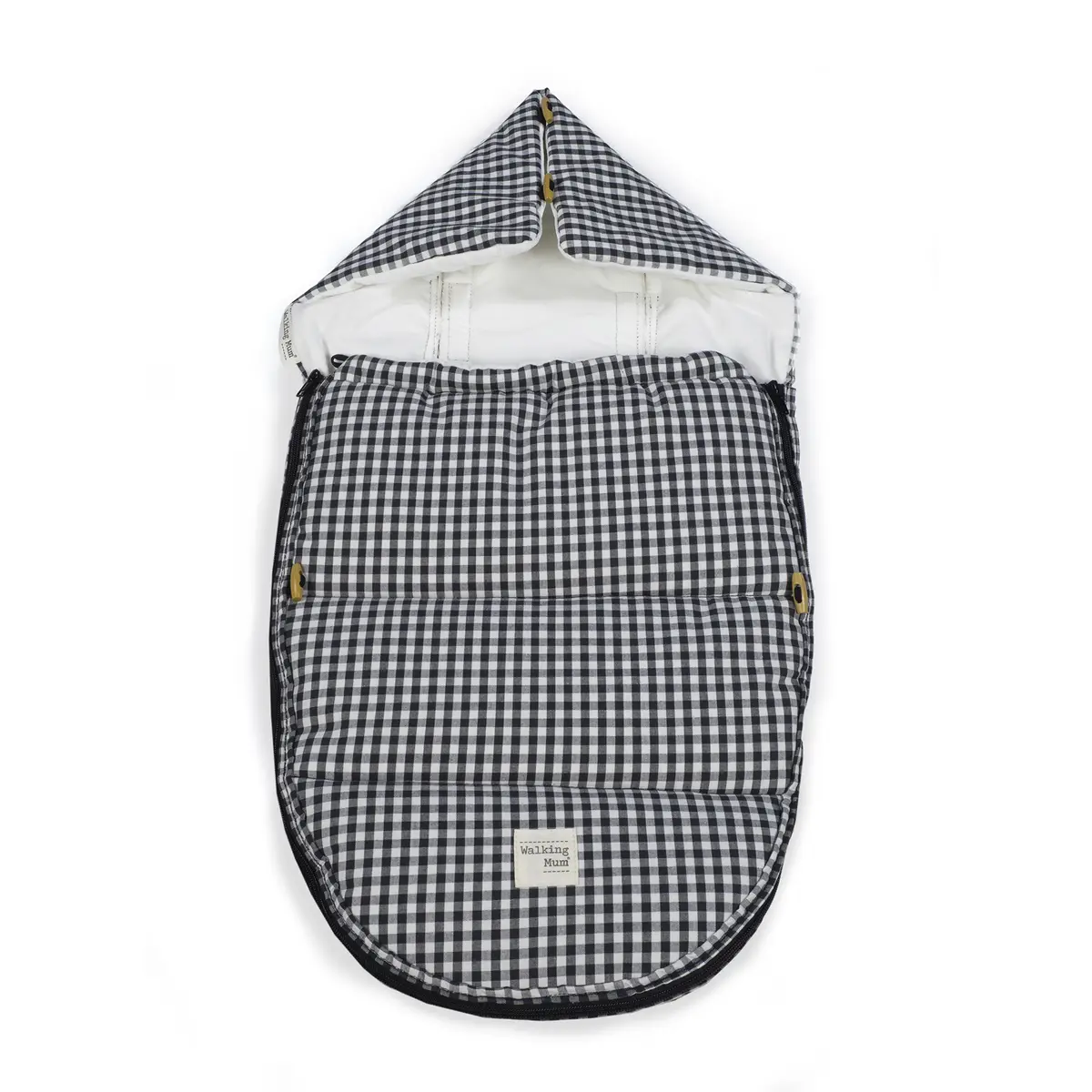 Funda con saco I love vichy negro ideal para cuco y portabebé. Dispone de varias aperturas (ojales) y ajustes para adaptarla a la mayoría de los Portabebés. Con este saco tu bebé estará siempre calentito y cómodo durante los meses fríos de otoño e invierno. Puedes moverlo del carro a la cuna sin incomodarlo ni perturbar sus dulces sueños. Gran calidad y mucho estilo. Fabricado en materiales resistentes y de fácil limpieza a mano o a máquina a 30 °C. Walking Mum protege a tu bebé utilizando los mejores tejidos, libres de colorantes azoicos y sustancias nocivas para la salud. Nuestra colección Walking Mum guarda toda la calidad de la marca Pasito a Pasito pero con un particular sello de estilo urbano y moderno que no pasa desapercibido, para vestir diferente los paseos con tu bebé. Los accesorios de esta línea son más sport y prácticos, especialmente pensados en mamás y papás modernos que aprecian los diseños más actuales y en tendencia sin dejar de lado la calidad y la funcionalidad de los complementos que hacen más cómodos todos los paseos con sus bebés.Medidas: 40 x 80 cm.