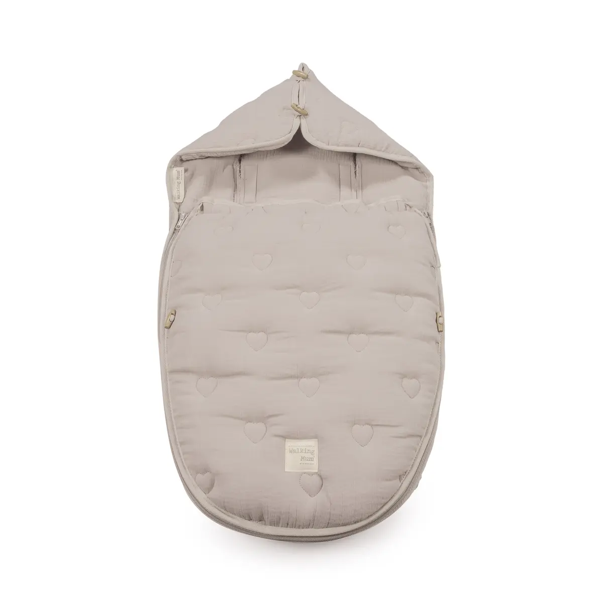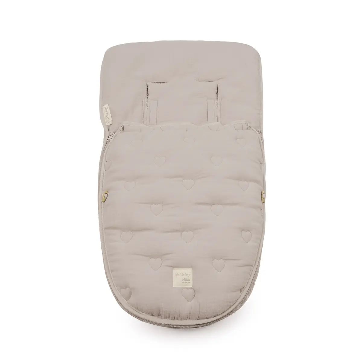 Funda con saco Sintra beige con corazones bordados. Está fabricado con una suave muselina en el interior 100% algodón. Es ideal para cuco y portabebé. Dispone de varias aperturas (ojales) y ajustes para adaptarla a la mayoría de los Portabebés. Con este saco tu bebé estará cómodo durante los meses de primavera y de otoño. Trasera con material anti-sudoración que evita la sudoración excesiva del bebe y protege la silla haciendo el paseo más confortable. Puedes moverlo del carro a la cuna sin incomodarlo ni perturbar sus dulces sueños. Relleno extraíble. Gran calidad y mucho estilo. Fabricado en materiales resistentes y de fácil limpieza a mano o a máquina a 30 °C. Walking Mum protege a tu bebé utilizando los mejores tejidos, libres de colorantes azoicos y sustancias nocivas para la salud. Nuestra colección Walking Mum guarda toda la calidad de la marca Pasito a Pasito pero con un particular sello de estilo urbano y moderno que no pasa desapercibido, para vestir diferente los paseos con tu bebé. Los accesorios de esta línea son más sport y prácticos, especialmente pensados en mamás y papás modernos que aprecian los diseños más actuales y en tendencia sin dejar de lado la calidad y la funcionalidad de los complementos que hacen más cómodos todos los paseos con sus bebés.Medidas: 40 x 80 cm.
