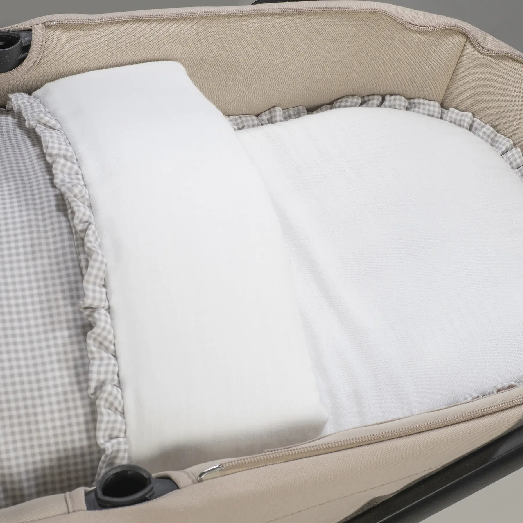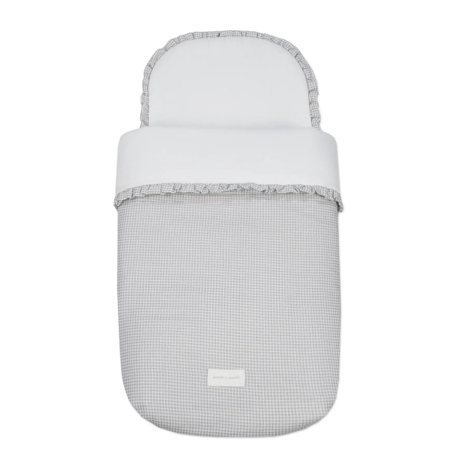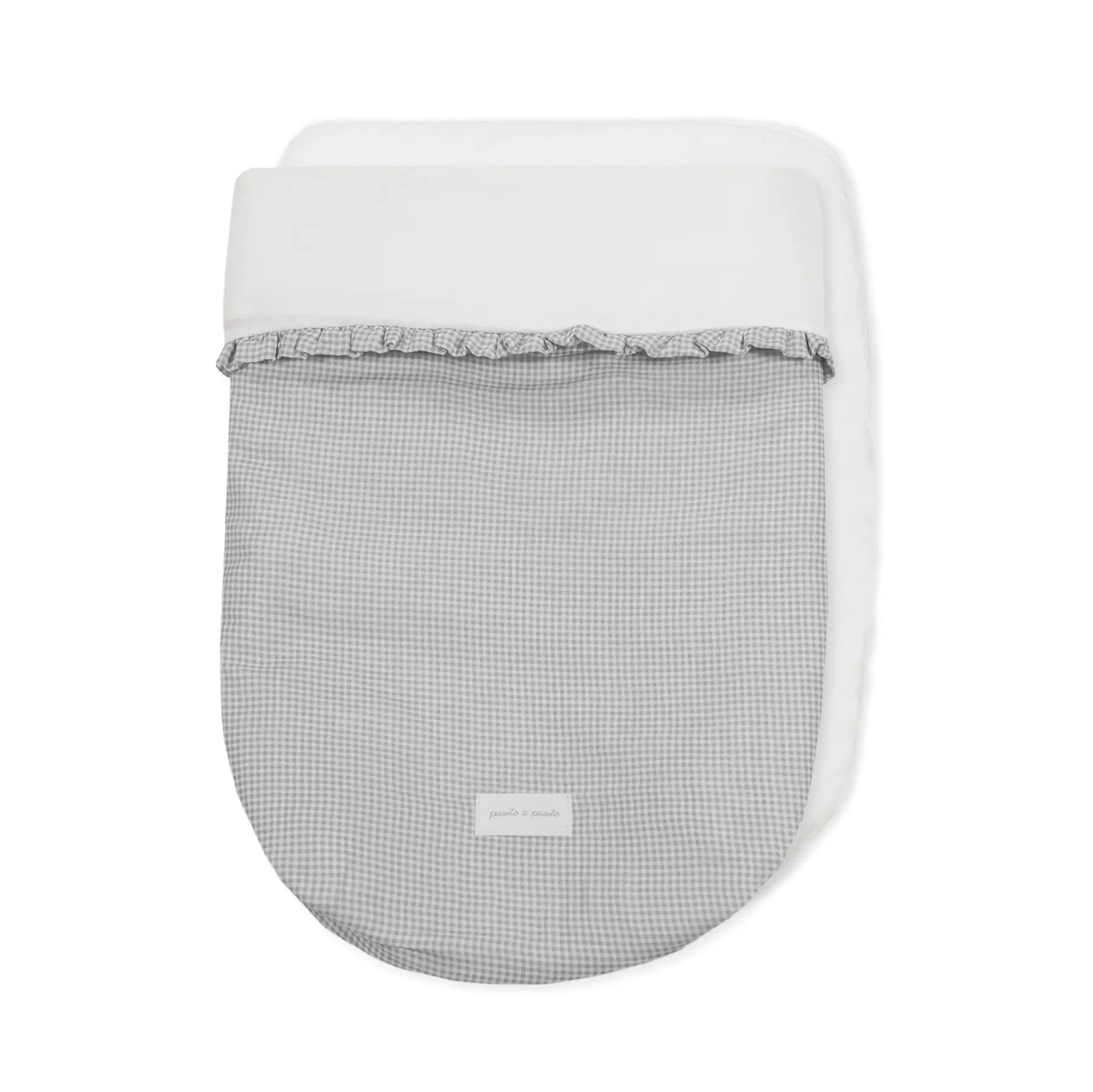 El saco para capazo o cuco Little Bloom VIchy gris de Pasito a Pasito envuelve al bebé en un espacio cálido, suave y confortable desde sus primeros paseos. Su delicado diseño combina muselina estampada y muselina lisa 100% algodón, aportando ligereza, transpirabilidad y un tacto natural ideal para la piel del recién nacido. Incorpora una colchoneta interior con tejido 3D, que mejora la ventilación y el confort durante el descanso. Además, dispone de relleno extraíble, permitiendo adaptar el nivel térmico según la estación del año y las necesidades del bebé. Con un nivel térmico TOG 2.5, ofrece abrigo adecuado para temperaturas frescas, mientras que sin relleno es perfecto para entretiempo o interiores. Además, el saco puede retirarse completamente, dejando únicamente la colchoneta, una opción perfecta para los meses más cálidos. Un saco práctico y versátil que acompaña al bebé con la elegancia característica de Pasito a Pasito. Acabados de calidad. Todas nuestras fundas están fabricadas conforme a las más exigentes normativas europeas, con materiales de gran calidad, libres de colorantes azoicos, ftalatos y sustancias nocivas para la salud. Tela de fácil limpieza, se recomienda lavar a máquina a 30º. Los productos para bebé de Pasito a Pasito cuentan con un diseño muy diferente a todas las demás. Sus colecciones se caracterizan por el trabajo al detallada, pensadas siempre desde un punto de vista práctico. Utilizan materiales de primera calidad para remarcar la elegancia y la armonía en cada una de sus piezas. Nuestros modelos son exclusivos y de estilo inconfundible, pensados en las madres actuales que gozan de buen gusto y que aprecian los detalles tanto como nosotros. Especificaciones: Materiales: 100% algodón. Tamaño universal.