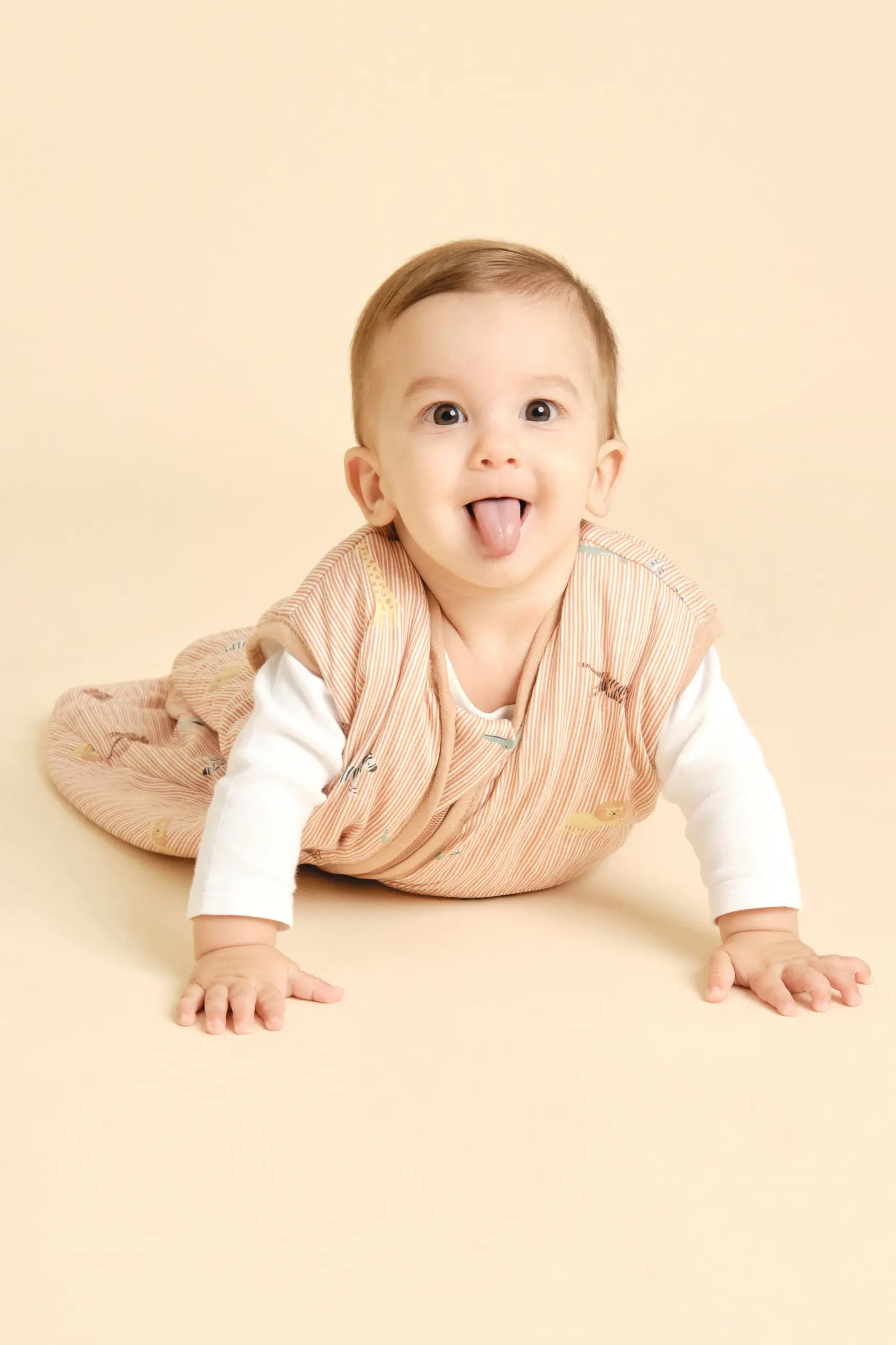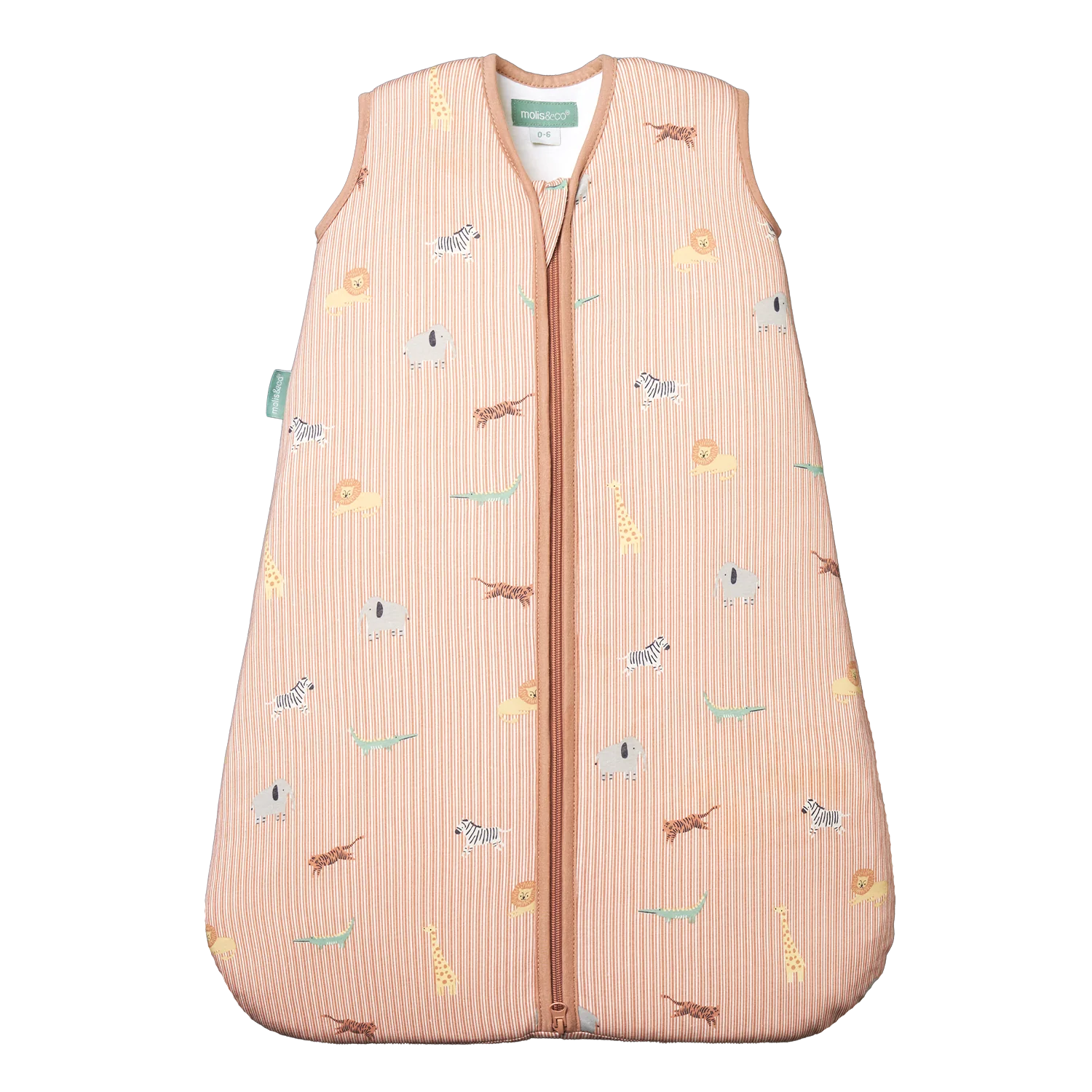 Saquito de dormir sin mangas para entretiempo, está ligeramente acolchado, y es ideal para los meses templados del año. Su tejido 100% algodón le aporta al bebé gran confort y suavidad al tacto. Además, su relleno acolchadito mantiene la temperatura corporal del peque durante toda la noche favoreciendo un mejor descanso. Está indicado para habitaciones entre 21ºC – 23ºC.