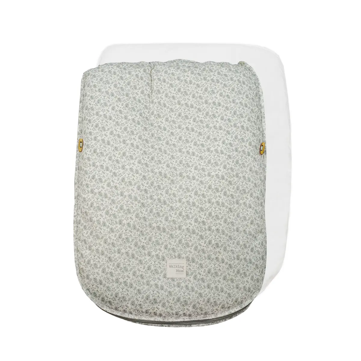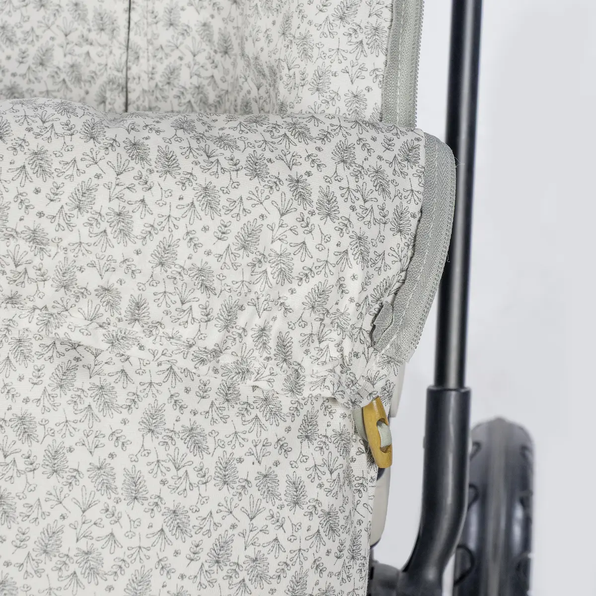 La funda de silla para bebé Gala Mint con estampado floral está fabricado con un tejido de 100% algodón. Es la funda ideal para cubrir la base de la silla de paseo y viene provista de saco para arropar a tu bebé. Con este saco tu bebé estará cómodo durante los meses de primavera y de otoño. Trasera con material anti-sudoración que evita la sudoración excesiva del bebe. Relleno extraíble. Su esquema dispone de varias aperturas (ojales) y ajustes con los que se te hará más fácil adaptarla a la mayoría de los cochecitos, convirtiendo el paseo de tu bebé seguro y confortable. Está elaborado con un material resistene y cálido. Cuenta con una base de poliéster en el reposapiés que facilita la limpieza posterior a su uso. Es un diseño bonito, simple y cómodo que crea un nido para tu bebé manteniéndolo arropado y protegido. El saco se adapta sin problemas a cualquier coche y le permite disfrutar de un descanso más agradable con la forma acogedora que tiene de nido.Gran calidad y mucho estilo. Fabricado en materiales resistentes y de fácil limpieza a mano o a máquina a 30 °C. Walking Mum protege a tu bebé utilizando los mejores tejidos, libres de colorantes azoicos y sustancias nocivas para la salud. Nuestra colección Walking Mum guarda toda la calidad de la marca Pasito a Pasito pero con un particular sello de estilo urbano y moderno que no pasa desapercibido, para vestir diferente los paseos con tu bebé. Los accesorios de esta línea son más sport y prácticas, especialmente pensadas en mamás y papás modernos que aprecian los diseños más actuales y en tendencia sin dejar de lado la calidad y la funcionalidad de complemetos que hacen más cómodos todos los paseos con sus bebés. Medidas: 47 x 90 cm.