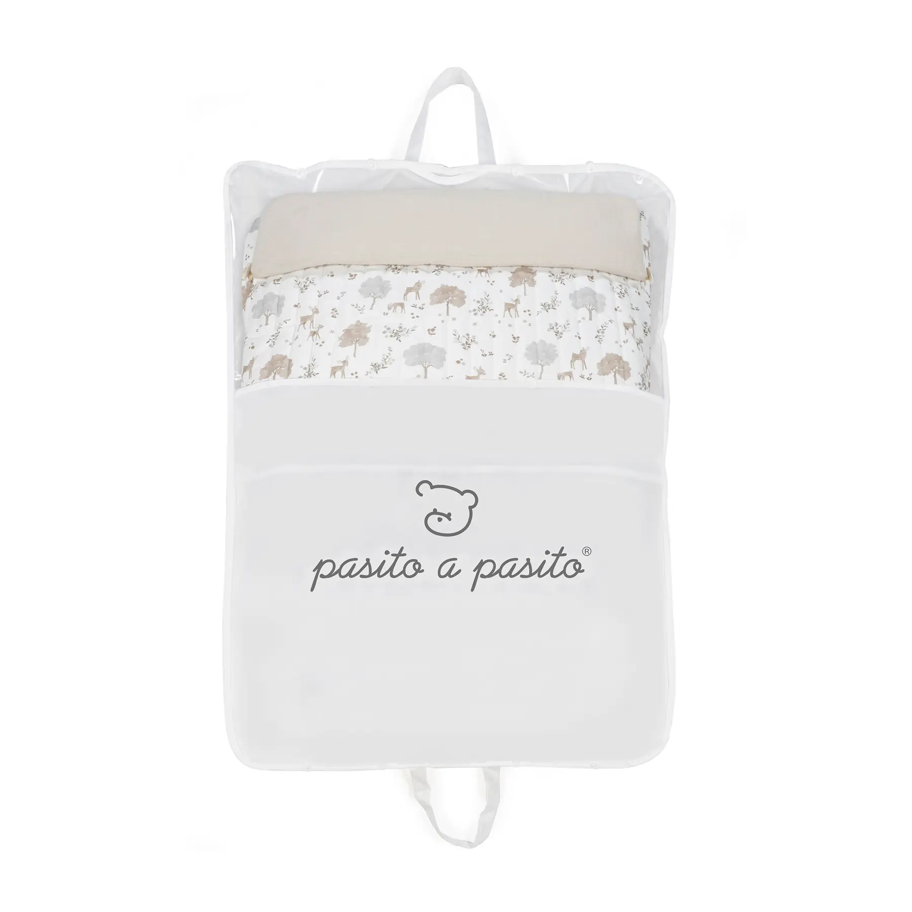 Funda Nara de Pasito a pasito en tejido de algodón y bambula muy suave ideal para cubrir la silla de paseo provista de saco. Está diseñado en el respaldar con una capa de tejido en material transpirable que aísla la humedad y evita la sudoración excesiva del bebe haciendo el paseo más confortable. Relleno de fibra hueca extraíble. Reposapiés de poliéster para facilitar la limpieza. Dispone de varias aperturas (ojales) y ajustes para adaptarla a la mayoría de la sillitas de paseo, convirtiendo el paseo de tu bebé seguro y confortable. Es un diseño bonito, simple y cómodo que crea un nido para tu bebé manteniéndolo arropado y protegido en días de brisa. El saco se adapta sin problemas a cualquier coche para darle la comodidad que necesita. Acabados de calidad. Todas nuestras fundas están fabricadas conforme a las más exigentes normativas europeas, con materiales de gran calidad, libres de colorantes azoicos, ftalatos y sustancias nocivas para la salud. Tela de fácil limpieza, se recomienda lavar a máquina a 30º. Los productos para bebé de Pasito a Pasito cuentan con un diseño muy diferente a todas las demás. Sus colecciones se caracterizan por el trabajo al detallada, pensadas siempre desde un punto de vista práctico. Utilizan materiales de primera calidad para remarcar la elegancia y la armonía en cada una de sus piezas. Nuestros modelos son exclusivos y de estilo inconfundible, pensados en las madres actuales que gozan de buen gusto y que aprecian los detalles tanto como nosotros. Materiales: 100% algodón. Tamaño universal.
