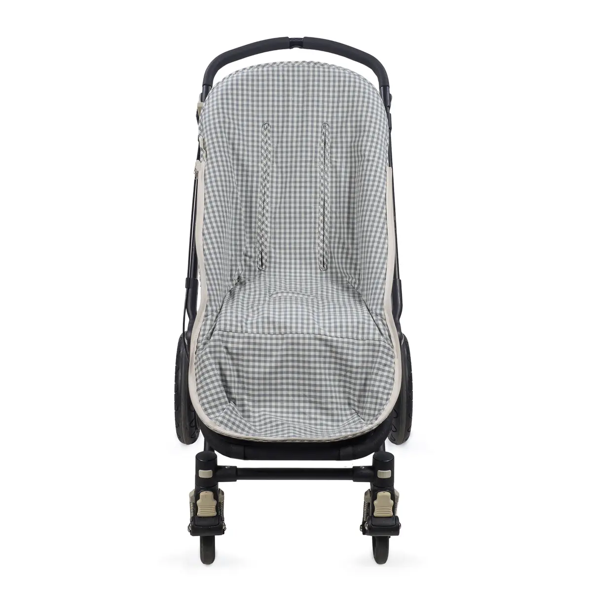 La funda de silla para bebé Praliné Vichy/Rayas Matcha es la funda ideal para cubrir la base de la silla de paseo y viene provista de saco para arropar a tu bebé. Con este saco tu bebé estará cómodo durante los meses de primavera y de otoño. Trasera con material anti-sudoración que evita la sudoración excesiva del bebe. Relleno extraíble. Su esquema dispone de varias aperturas (ojales) y ajustes con los que se te hará más fácil adaptarla a la mayoría de los cochecitos, convirtiendo el paseo de tu bebé seguro y confortable. Está elaborado con un material resistene y cálido. Es un diseño bonito, simple y cómodo que crea un nido para tu bebé manteniéndolo arropado y protegido. El saco se adapta sin problemas a cualquier coche y le permite disfrutar de un descanso más agradable con la forma acogedora que tiene de nido.Gran calidad y mucho estilo. Fabricado en materiales resistentes y de fácil limpieza a mano o a máquina a 30 °C. Walking Mum protege a tu bebé utilizando los mejores tejidos, libres de colorantes azoicos y sustancias nocivas para la salud. Nuestra colección Walking Mum guarda toda la calidad de la marca Pasito a Pasito pero con un particular sello de estilo urbano y moderno que no pasa desapercibido, para vestir diferente los paseos con tu bebé. Los accesorios de esta línea son más sport y prácticas, especialmente pensadas en mamás y papás modernos que aprecian los diseños más actuales y en tendencia sin dejar de lado la calidad y la funcionalidad de complemetos que hacen más cómodos todos los paseos con sus bebés. Especificaciones: Materiales: exterior 65% algodón/35% poliéster. Medidas: 47 x 90 cm.
