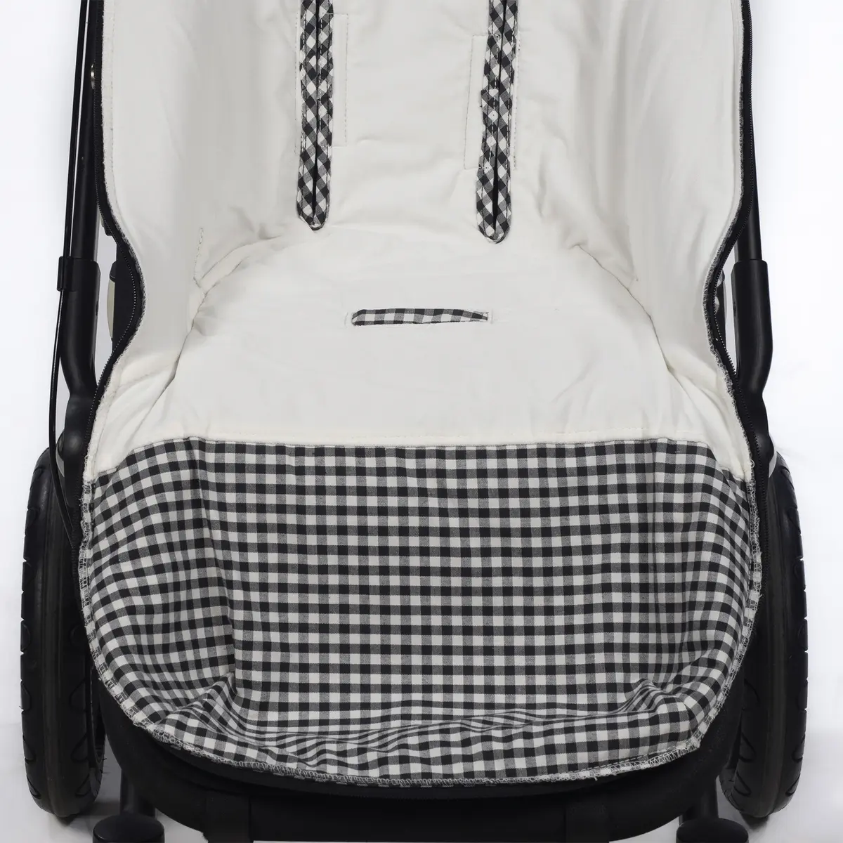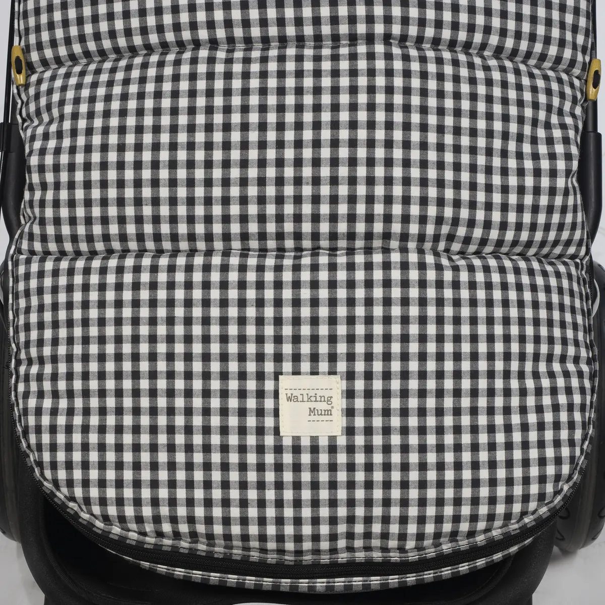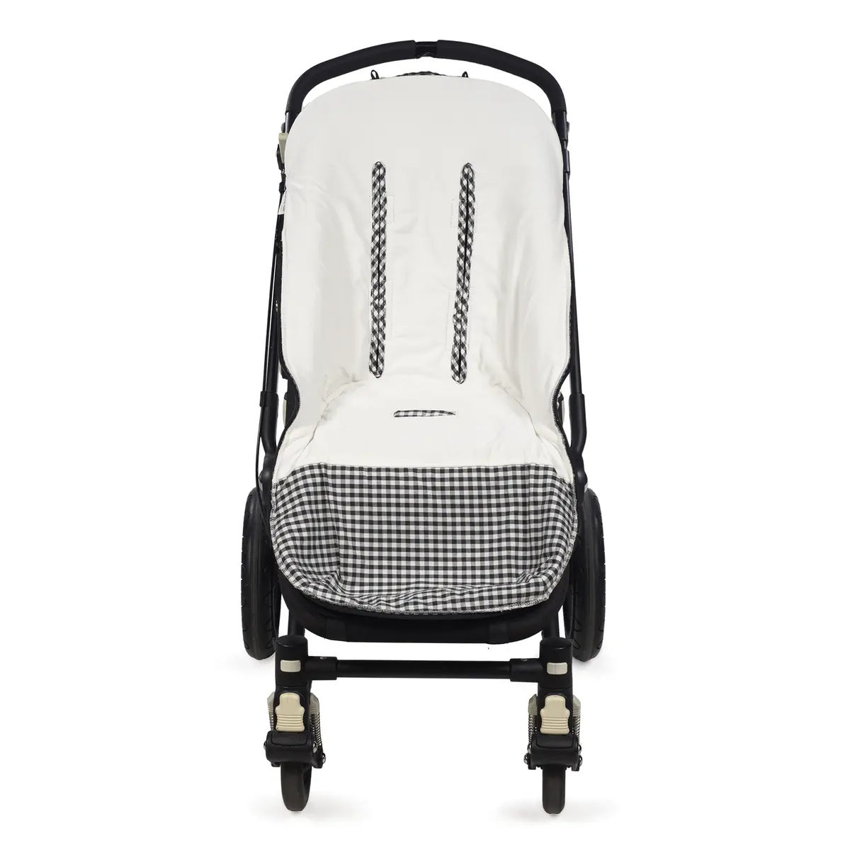 La funda de silla para bebé I love vichy negro, es la funda ideal para cubrir la base de la silla de paseo y viene provista de saco para arropar a tu bebé. Su esquema dispone de varias aperturas (ojales) y ajustes con los que se te hará más fácil adaptarla a la mayoría de los cochecitos, convirtiendo el paseo de tu bebé seguro y confortable. Está elaborado con un material resistene y cálido. Cuenta con una base plastificada en el reposapiés que facilita la limpieza posterior a su uso. Es un diseño bonito, simple y cómodo que crea un nido para tu bebé manteniéndolo arropado y protegido en días de frio. El saco se adapta sin problemas a cualquier coche y le permite disfrutar de un descanso más agradable con la forma acogedora que tiene de nido.Gran calidad y mucho estilo. Fabricado en materiales resistentes y de fácil limpieza a mano o a máquina a 30 °C. Walking Mum protege a tu bebé utilizando los mejores tejidos, libres de colorantes azoicos y sustancias nocivas para la salud. Nuestra colección Walking Mum guarda toda la calidad de la marca Pasito a Pasito pero con un particular sello de estilo urbano y moderno que no pasa desapercibido, para vestir diferente los paseos con tu bebé. Los accesorios de esta línea son más sport y prácticas, especialmente pensadas en mamás y papás modernos que aprecian los diseños más actuales y en tendencia sin dejar de lado la calidad y la funcionalidad de complemetos que hacen más cómodos todos los paseos con sus bebés. Medidas: 47 x 90 cm.