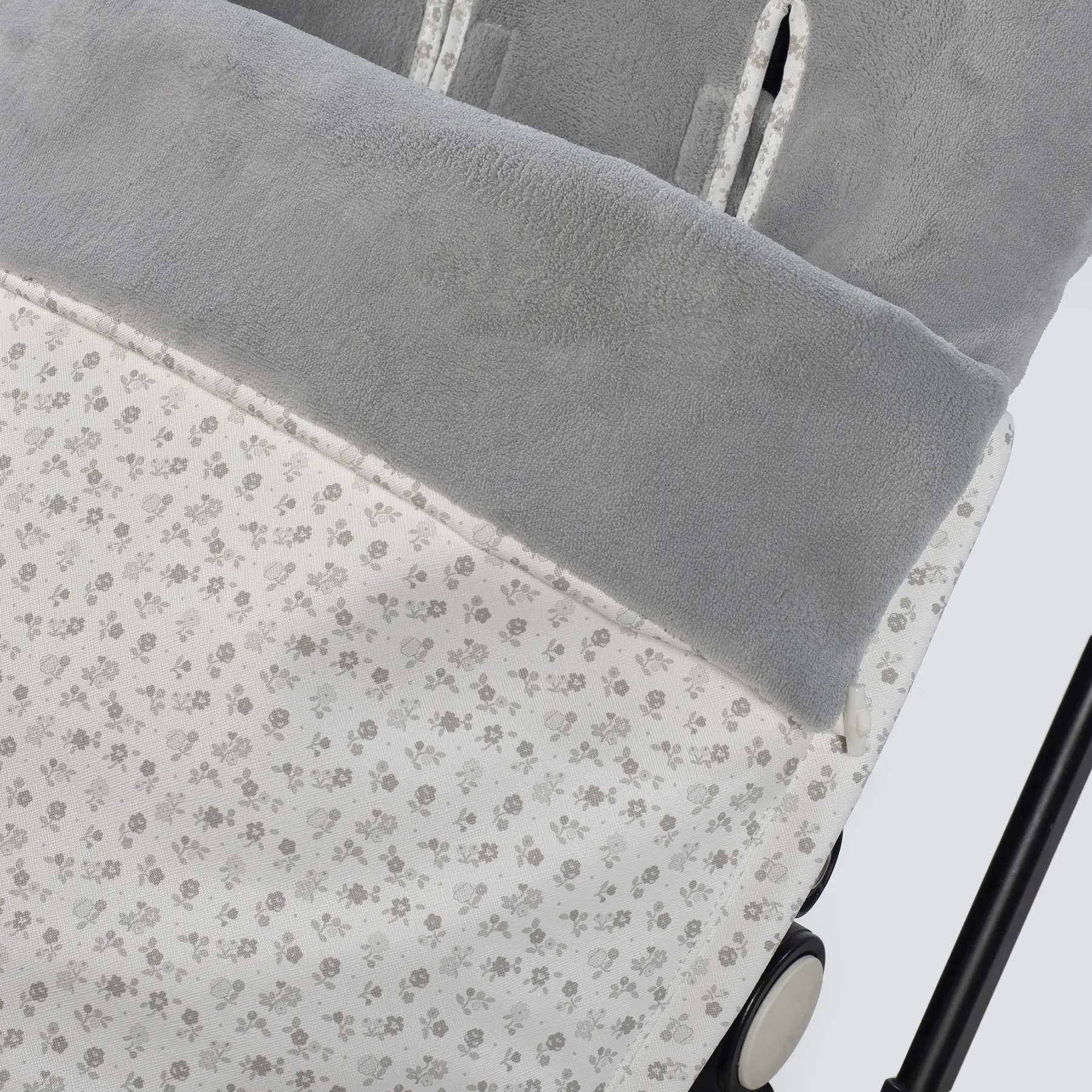 El saco de silla de invierno Little Bloom Flor gris de Pasito a Pasito ha sido diseñado para ofrecer el máximo confort y protección durante los paseos en los días más fríos, combinando funcionalidad y un estilo delicado y atemporal. Su interior de suave velour proporciona una agradable sensación de calidez y bienestar para el bebé, mientras que el exterior en piel vegana 100% PVC waterproof protege frente al viento y la humedad. Incorpora rejilla trasera transpirable, que favorece la ventilación y mejora la adaptación a la silla, así como un reposapiés en poliéster resistente al uso diario. Con un nivel térmico TOG 3.5 (Thermal Overall grade), garantiza una excelente capacidad de retención del calor, ideal para el invierno. Su diseño universal permite adaptarlo fácilmente a la mayoría de las sillas de paseo. Un saco práctico, elegante y confortable, pensado para acompañar cada paseo con la calidad y el cuidado característicos de Pasito a Pasito. Todas nuestras fundas están fabricadas conforme a las más exigentes normativas europeas, con materiales de gran calidad, libres de colorantes azoicos, ftalatos y sustancias nocivas para la salud. De fácil limpieza, se recomienda lavar a máquina a 30º. Los productos para bebé de Pasito a Pasito cuentan con un diseño muy diferente a todas las demás. Sus colecciones se caracterizan por el trabajo al detallada, pensadas siempre desde un punto de vista práctico. Utilizan materiales de primera calidad para remarcar la elegancia y la armonía en cada una de sus piezas. Nuestros modelos son exclusivos y de estilo inconfundible, pensados en las madres actuales que gozan de buen gusto y que aprecian los detalles tanto como nosotros. Materiales: exterior 100% vegan leather– int. 100% poliéster. Tamaño universal. TOG 3,5 (Thermal Overall Grade)