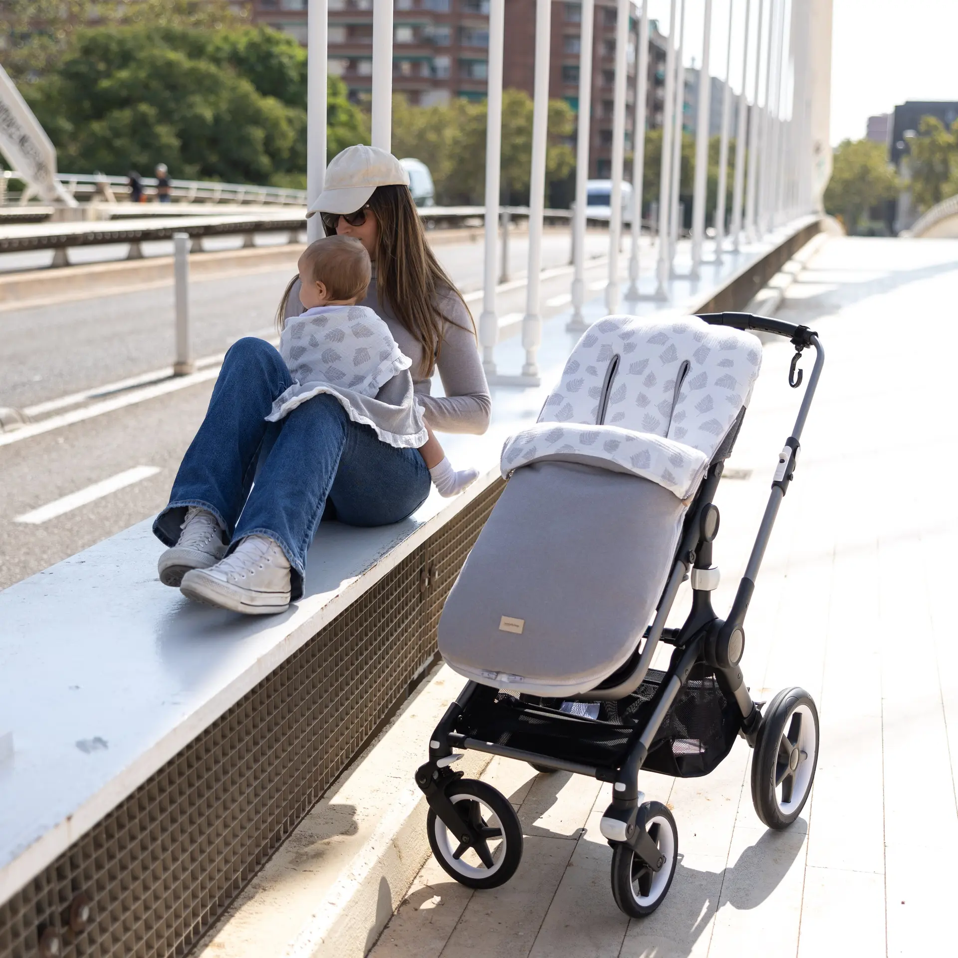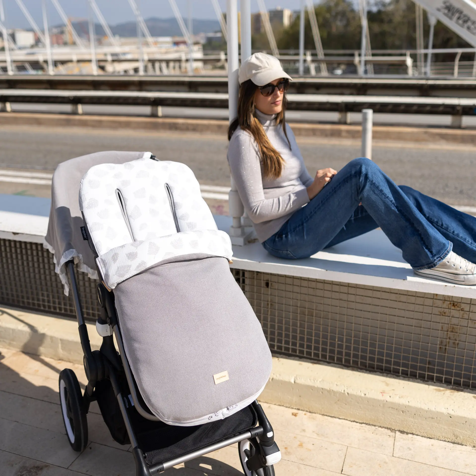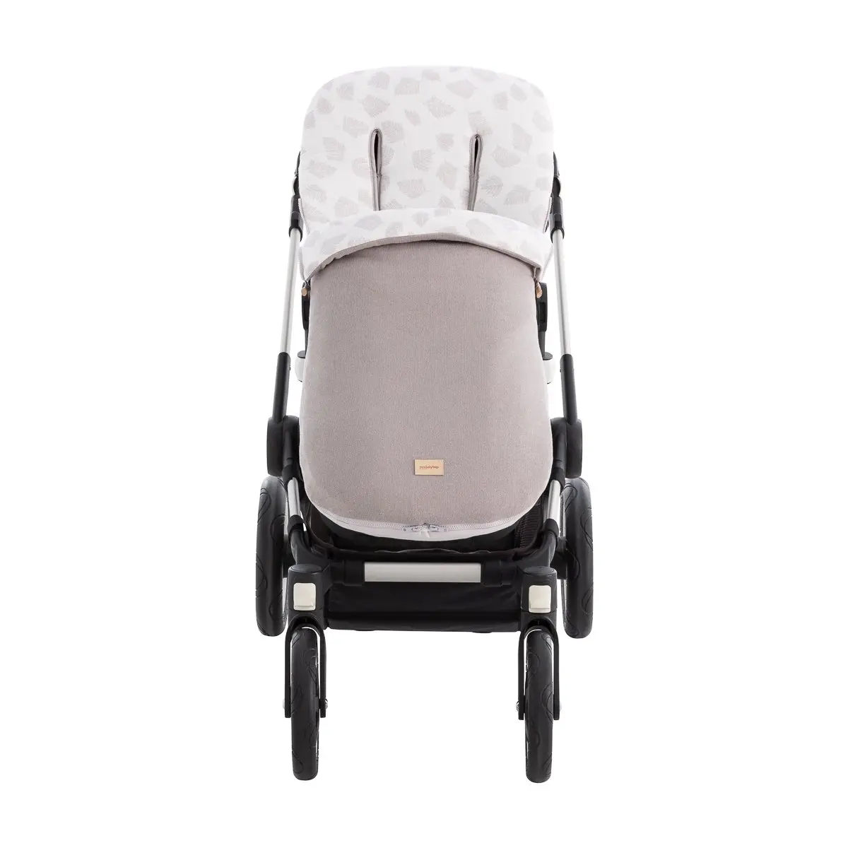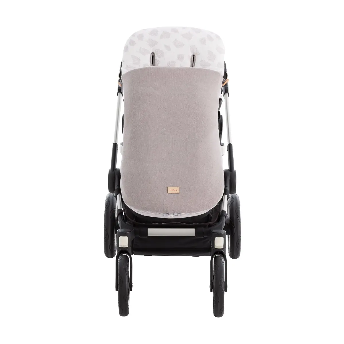 Dispone de platabanda trasera para enfundar perfectamente en la silla y evitar que el saco se caiga o se mueva durante el paseo. En el caso en los que la capota esté fija y no pueda enfundarse directamente en el respaldo, dispone de cintas en la parte trasera para atarlas.