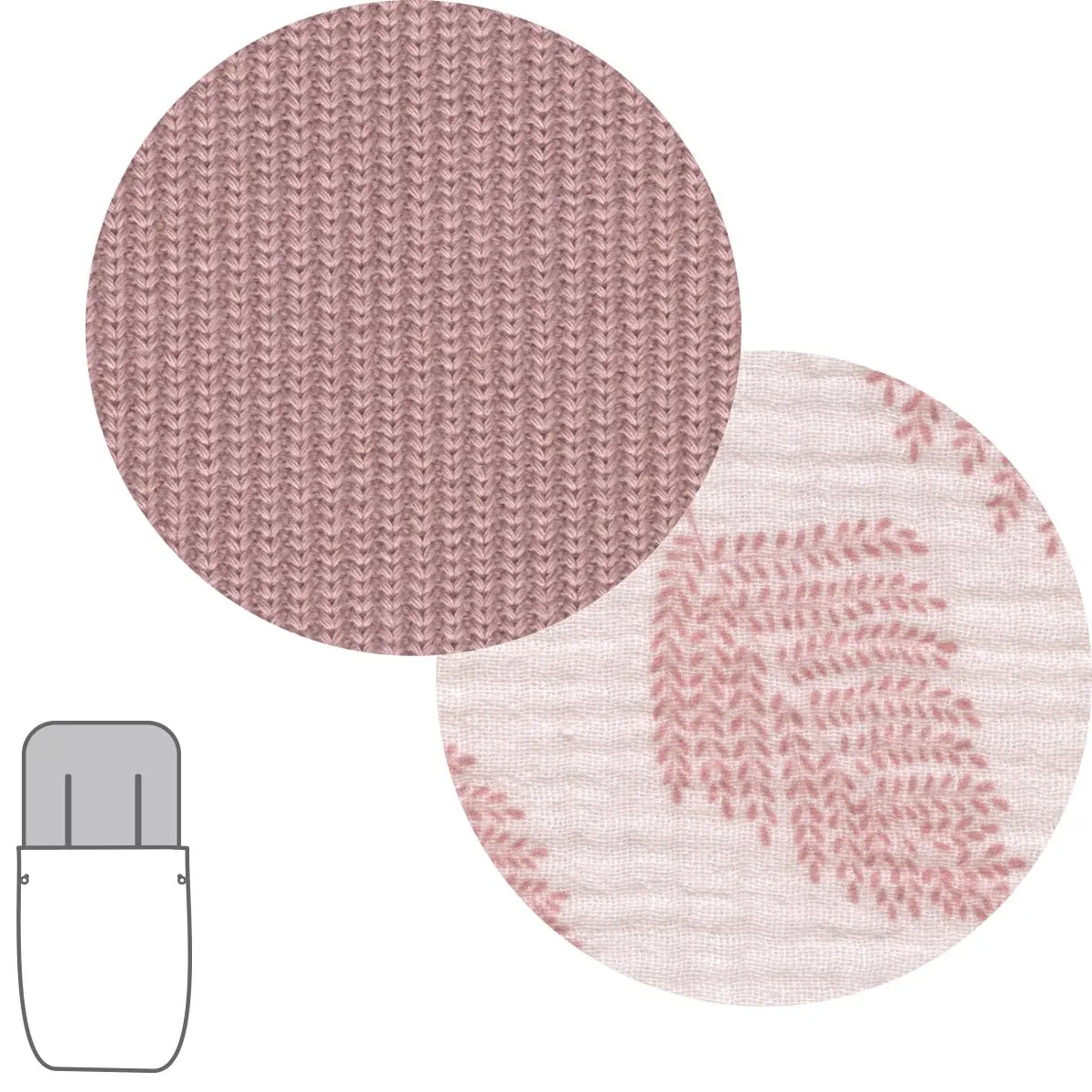 Dispone de platabanda trasera para enfundar perfectamente en la silla y evitar que el saco se caiga o se mueva durante el paseo. En el caso en los que la capota esté fija y no pueda enfundarse directamente en el respaldo, dispone de cintas en la parte trasera para atarlas.