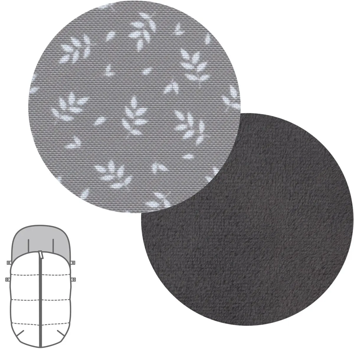 Dispone de platabanda en la parte trasera para enfundar perfectamente en la silla y evitar que el saco caiga o se mueva durante el paseo del bebé. En casos en los que la capota esté fija y no pueda enfundarse directamente en el respaldo, el saco silla paseo universal, dispone de cintas en la parte trasera para atarlas.