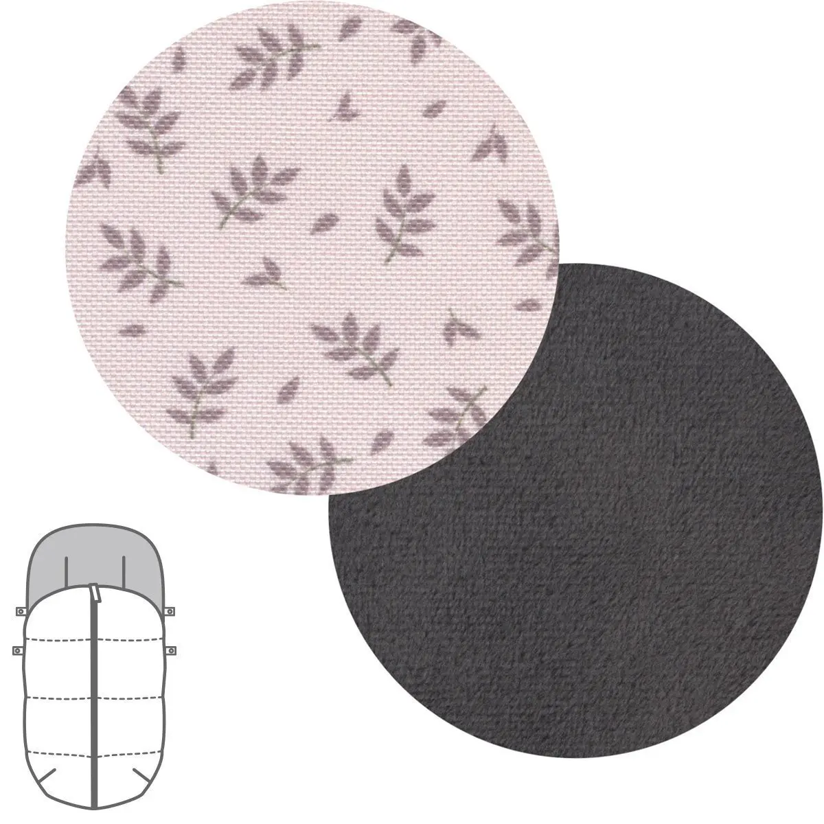 Dispone de platabanda en la parte trasera para enfundar perfectamente en la silla y evitar que el saco caiga o se mueva durante el paseo del bebé. En casos en los que la capota esté fija y no pueda enfundarse directamente en el respaldo, el saco silla paseo universal, dispone de cintas en la parte trasera para atarlas.