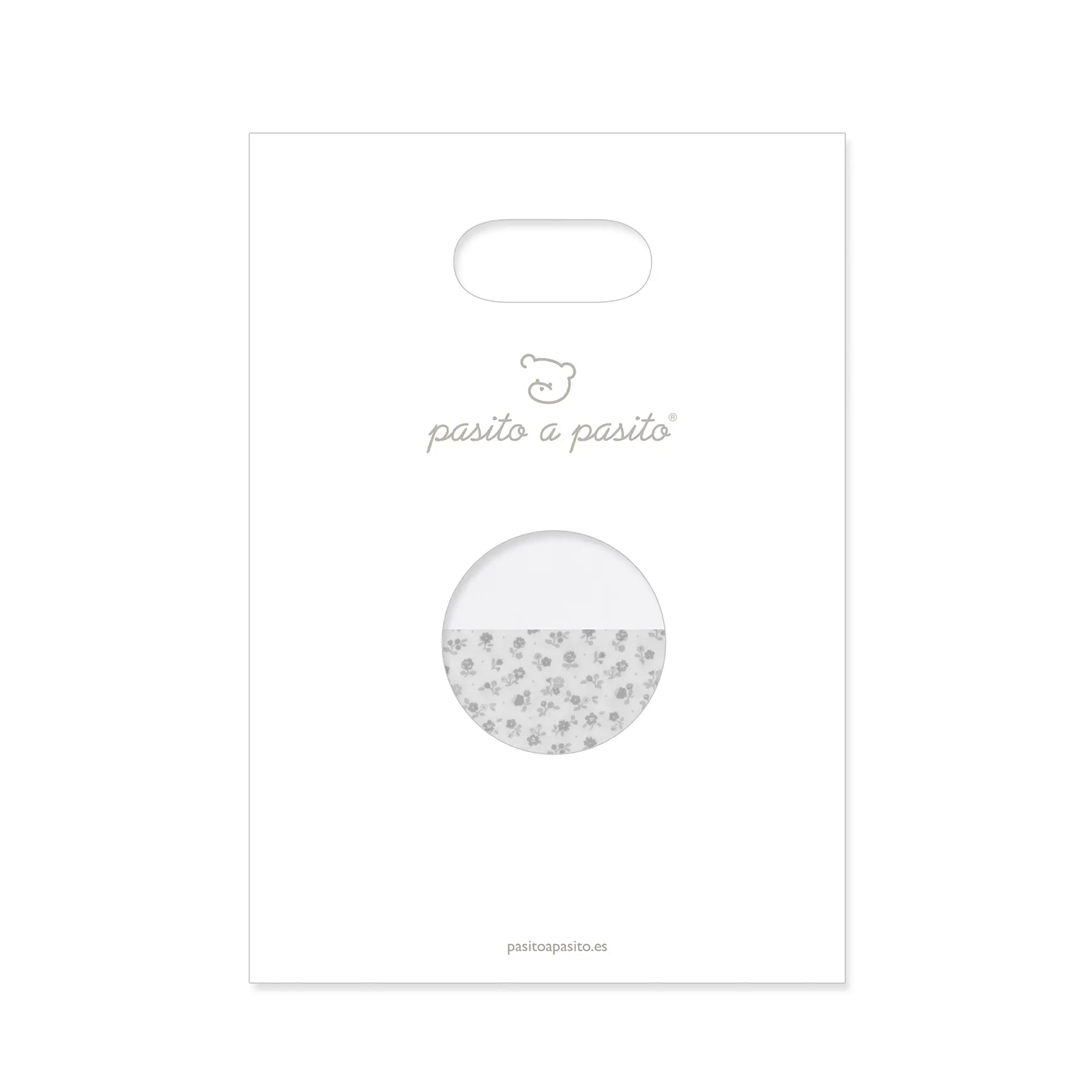 Este set de dos sábanas para capazo o moisés Little Bloom Flor gris con estampado de flores y lisa es ideal para garantizar el descanso y bienestar de tu bebé desde el primer día. Sábanas bajeras ajustables, confeccionadas en muselina de algodón 100% un tejido extra suave y transpirable, perfecto para la delicada piel del recién nacido. Materiales delicados con la piel del bebé, ideales para un descanso seguro y placentero. Fácil lavado y mantenimiento, manteniendo su suavidad lavado tras lavado. Este set de Pasito a pasito es un imprescindible en la canastilla del bebé, combinando calidad, funcionalidad y diseño. Este conjunto es ideal para mantener a tu bebé cómodo y protegido, con el estilo y calidad que caracteriza a Pasito a Pasito. Todos nuestros productos están fabricados conforme a las más exigentes normativas europeas, con materiales de gran calidad, libres de colorantes azoicos, ftalatos y sustancias nocivas para la salud. Tela de fácil limpieza, se recomienda lavar a máquina a 30º. Los productos para bebé de Pasito a Pasito cuentan con un diseño muy diferente a todas las demás. Sus colecciones se caracterizan por el trabajo al detallada, pensadas siempre desde un punto de vista práctico. Utilizan materiales de primera calidad para remarcar la elegancia y la armonía en cada una de sus piezas. Nuestros modelos son exclusivos y de estilo inconfundible, pensados en las madres actuales que gozan de buen gusto y que aprecian los detalles tanto como nosotros. Especificaciones: Materiales: 100% algodón. Tamaño universal.