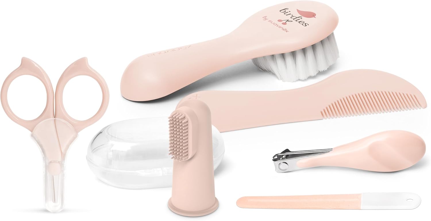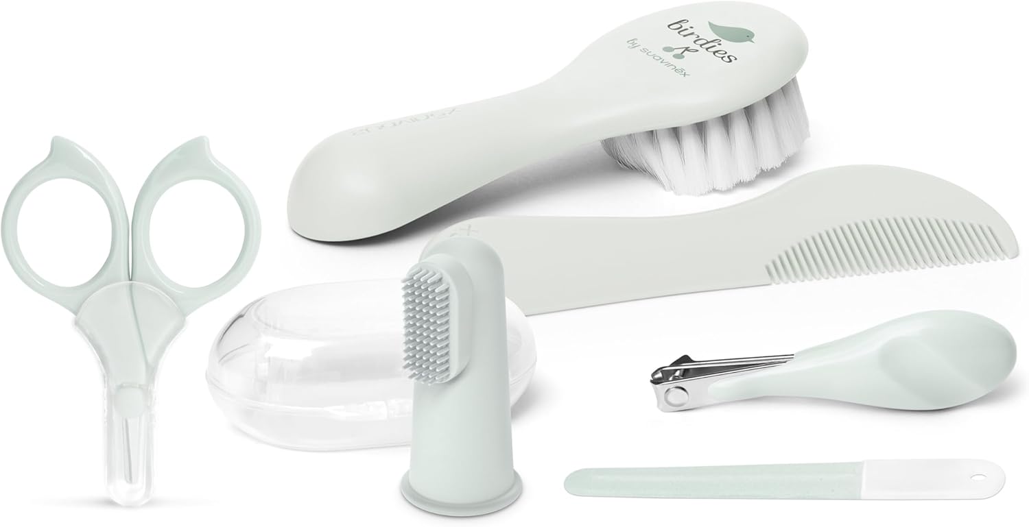 El Set de manicura Birdie de Suavinex es un práctico neceser que incluye los accesorios esenciales para el cuidado diario del bebé desde el nacimiento. Diseñado con materiales seguros y suaves, permite mantener las uñas, el cabello y la higiene del bebé de forma cómoda y delicada.