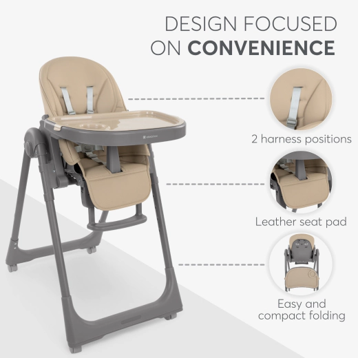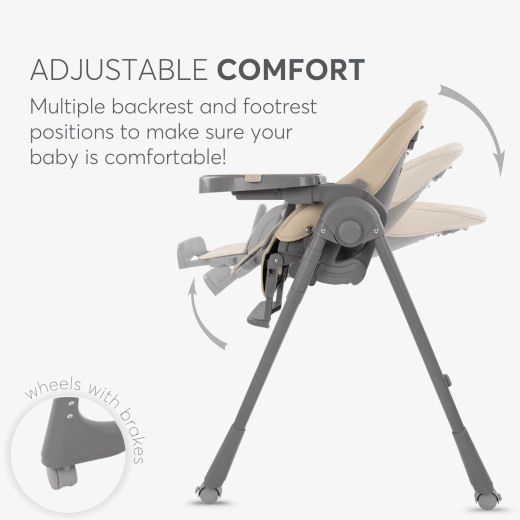 - Respaldo reclinable en 5 posiciones para comer o descansar.