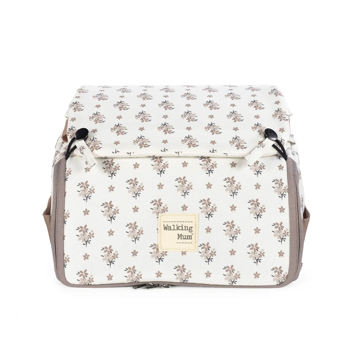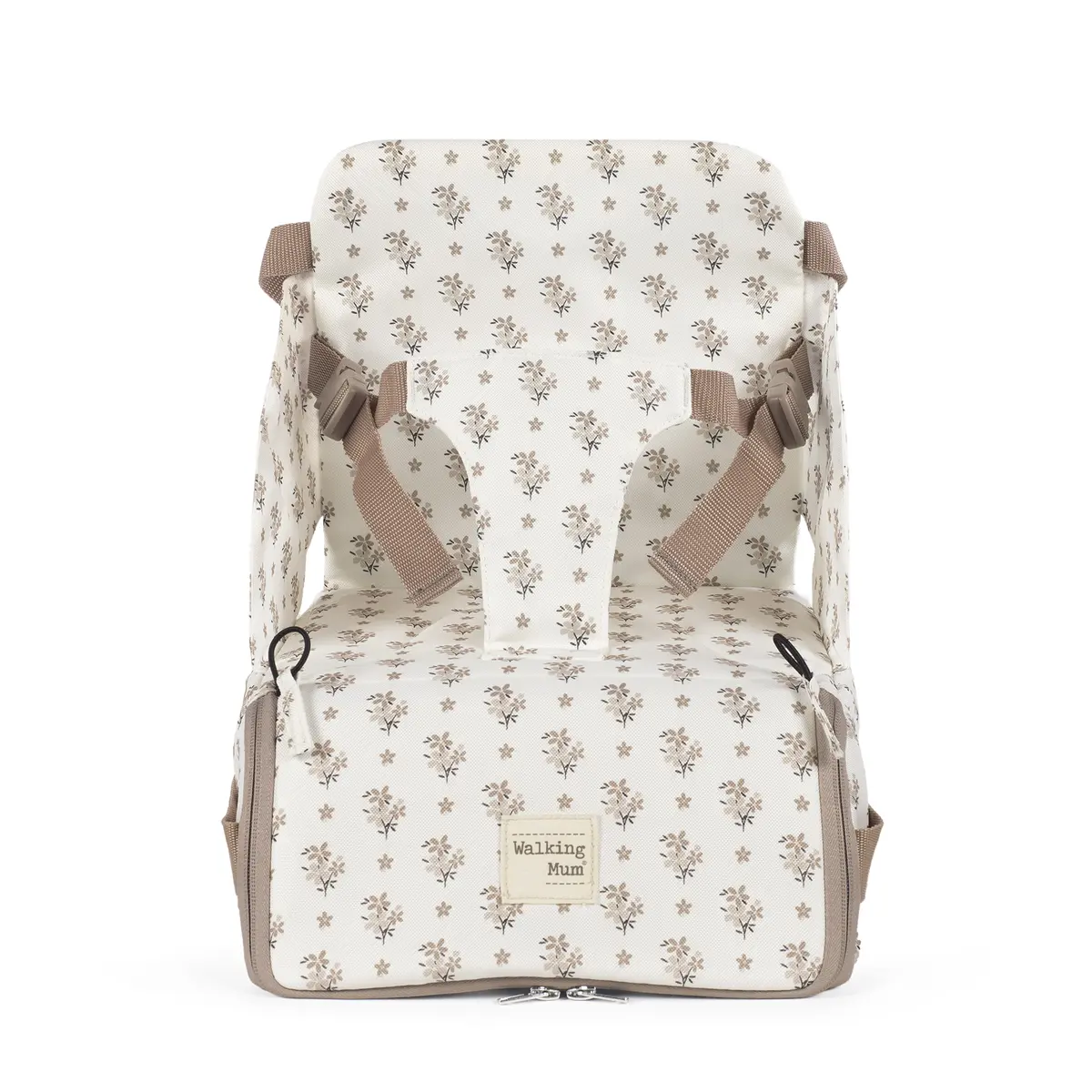 Esta trona portátil para bebés Botton flores es la solución perfecta para padres en movimiento que desean ofrecer a sus pequeños un asiento seguro y cómodo en cualquier lugar. Con un diseño moderno de cuadros en tonos neutros, esta trona que combina funcionalidad y estilo es la solución perfecta para alimentar a tu bebé en cualquier lugar. Su diseño plegable permite llevarla fácilmente a cualquier lugar, ya sea a un restaurante, de viaje o a la casa de los abuelos. Cuenta con una correa para llevarla cómodamente al hombro. Incluye un compartimento de almacenamiento en la base, perfecto para guardar pañales, toallitas u otros accesorios esenciales del bebé. Se adapta a la mayoría de las sillas de adulto estándar, ofreciendo versatilidad y comodidad en diferentes entornos. Incluye correas ajustables para fijarla de manera rápida y segura a al respaldo y al asiento. Las medidas mínimas de las sillas de adulto para poder fijar la trona son: altura mínima de respaldo 48.5 cm, anchura mínima del asiento 36 cm y profundidad mínima del asiento 34 cm. Dispone de arnés ajustables para sujetar bien al bebé proporcionando máxima seguridad durante las comidas. Fabricada con materiales de alta calidad, duraderos y resistentes, ideal para el uso diario. Es muy fácil de limpiar ya que es completamente desenfundable. Esta silla portátil está destinada para bebes que puedan mantenerse sentados por si solos. Desde los 6 meses hasta máximo 3 años o un peso máximo de 15 kgs. Cumple con la normativa EN 16120:2012+A2:2016. Asiento elevador. Walking Mum protege a tu bebé utilizando los mejores tejidos, libres de colorantes azoicos y sustancias nocivas para la salud. Especificaciones: Materiales: 100% Poliéster. Medidas cerrada: 29x36x31 cm.
